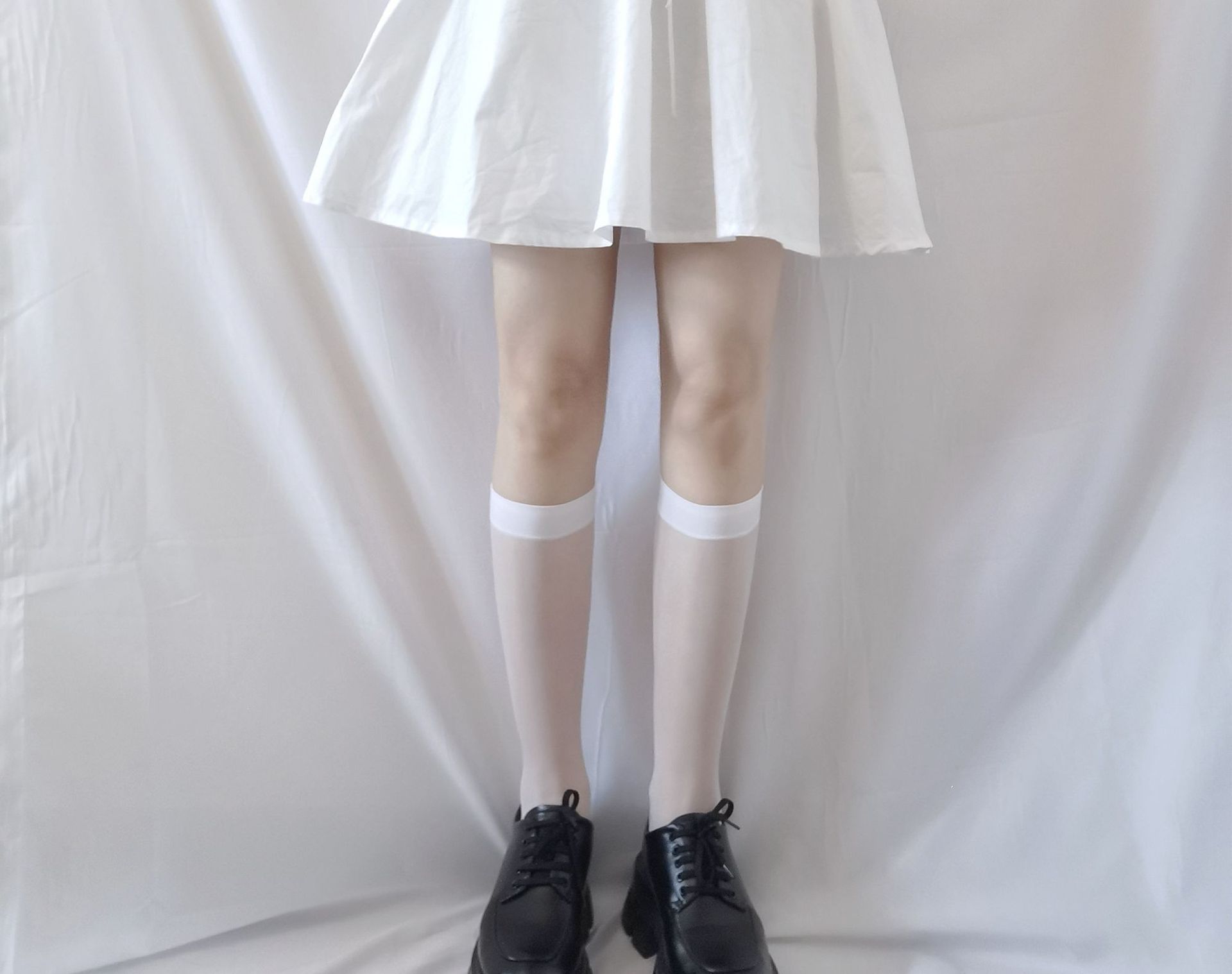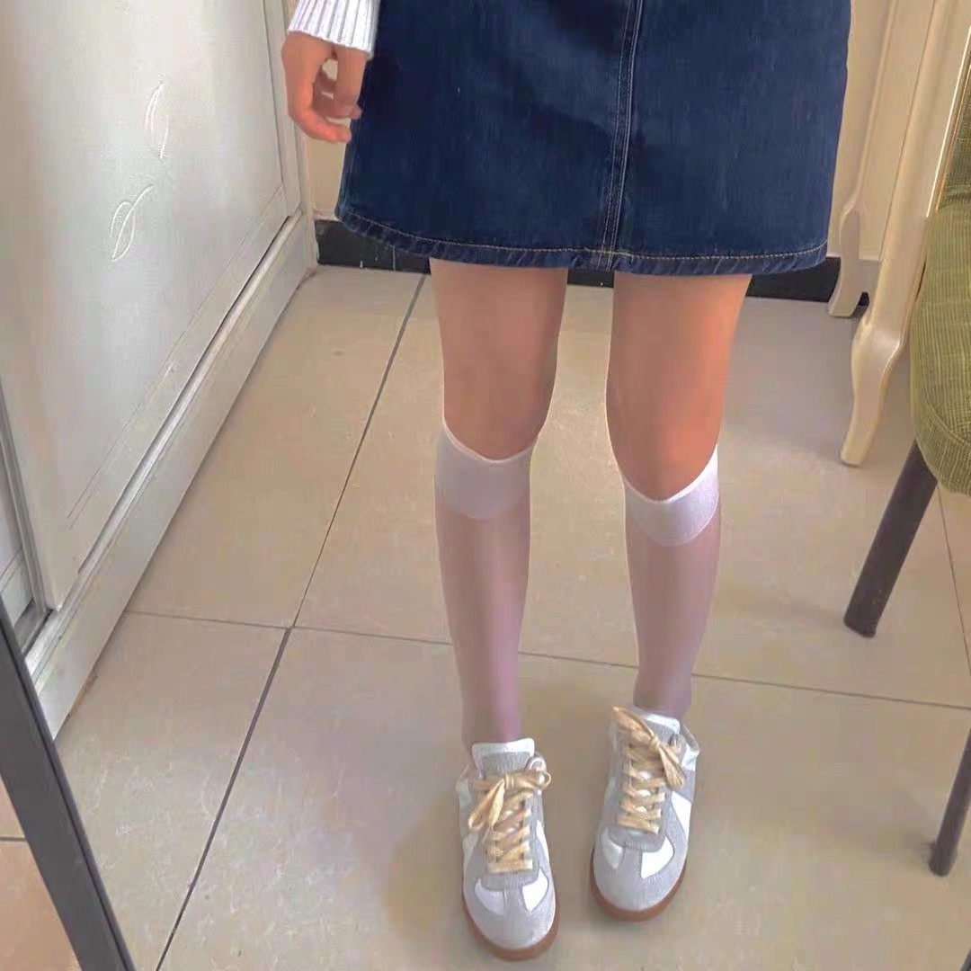 일본 중간 길이 블랙 실크 벨벳 코어-회전 실크 화이트 하이 양말 JK 송아지 양말 초박형 짧은 스타킹