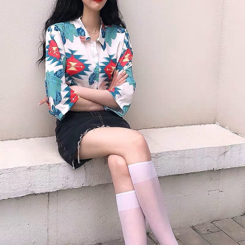 일본 중간 길이 블랙 실크 벨벳 코어-회전 실크 화이트 하이 양말 JK 송아지 양말 초박형 짧은 스타킹스토어 가기