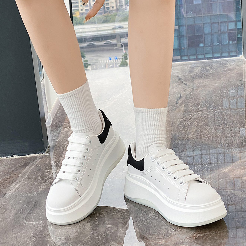 여성용 흰색 가죽 두꺼운 밑창 신발 2025 신상 인기 캐주얼 여성 신발 투명 미끄럼 방지 패션 다용도 트렌디 신발스토어 가기