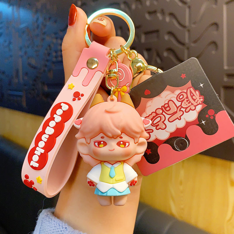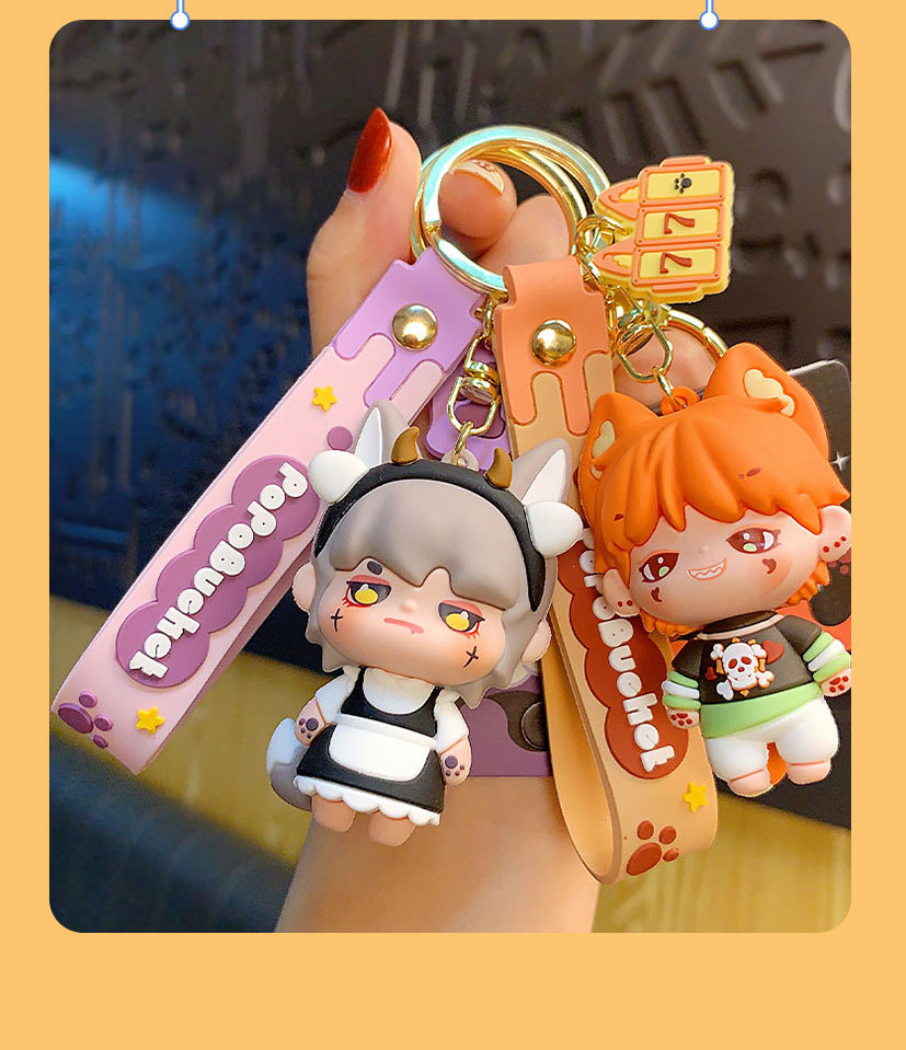 창조적 인 설탕 조금 사각형 야수 시리즈 키 체인 귀여운 만화 커플 자동차 인형 펜던트 작은 선물 도매
