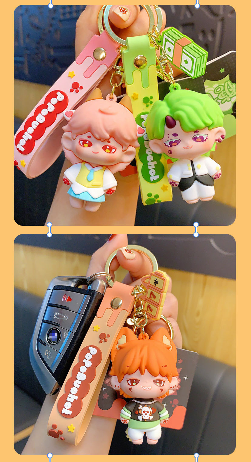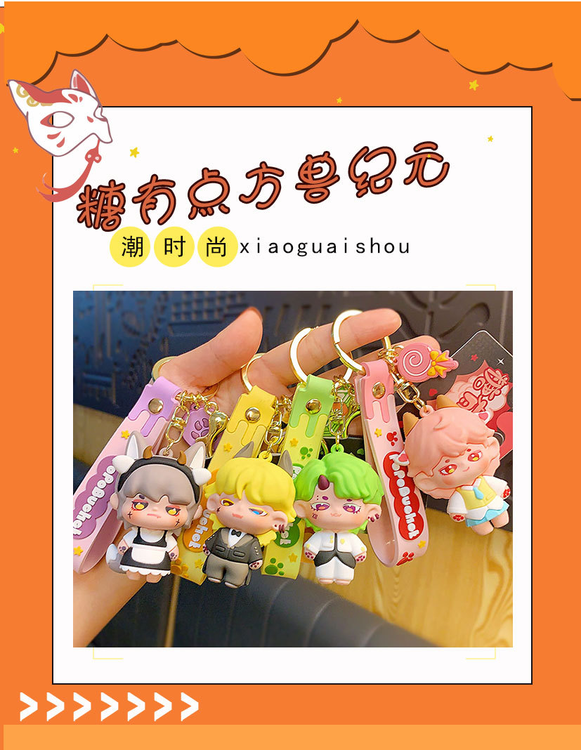 창조적 인 설탕 조금 사각형 야수 시리즈 키 체인 귀여운 만화 커플 자동차 인형 펜던트 작은 선물 도매스토어 가기