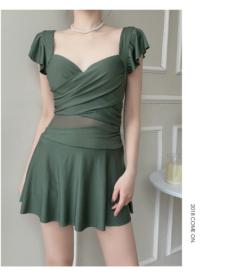 수영복 여자의 원피스 단색 프랑스 수영복 도매 보수 슬림 스틸 브라 원피스 수영복 온천
