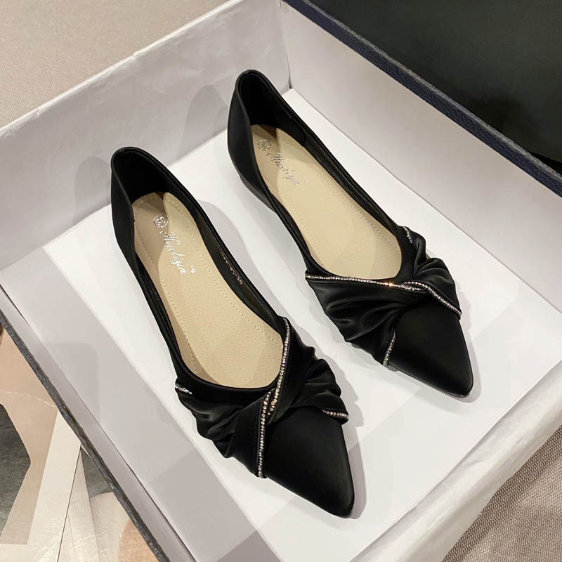 부드러운 밑창 여성용 얕은 입 뾰족한 국자 신발 부드러운 가죽 플랫 여성 신발 40-43 대형 신발 833-91스토어 가기