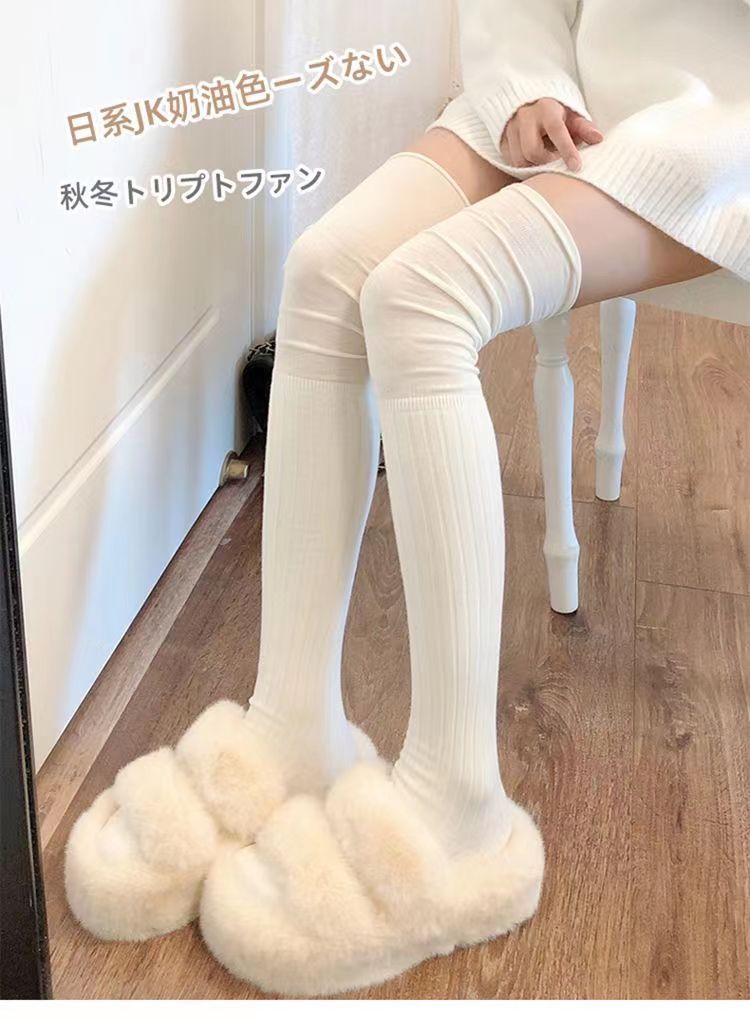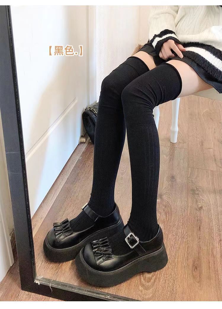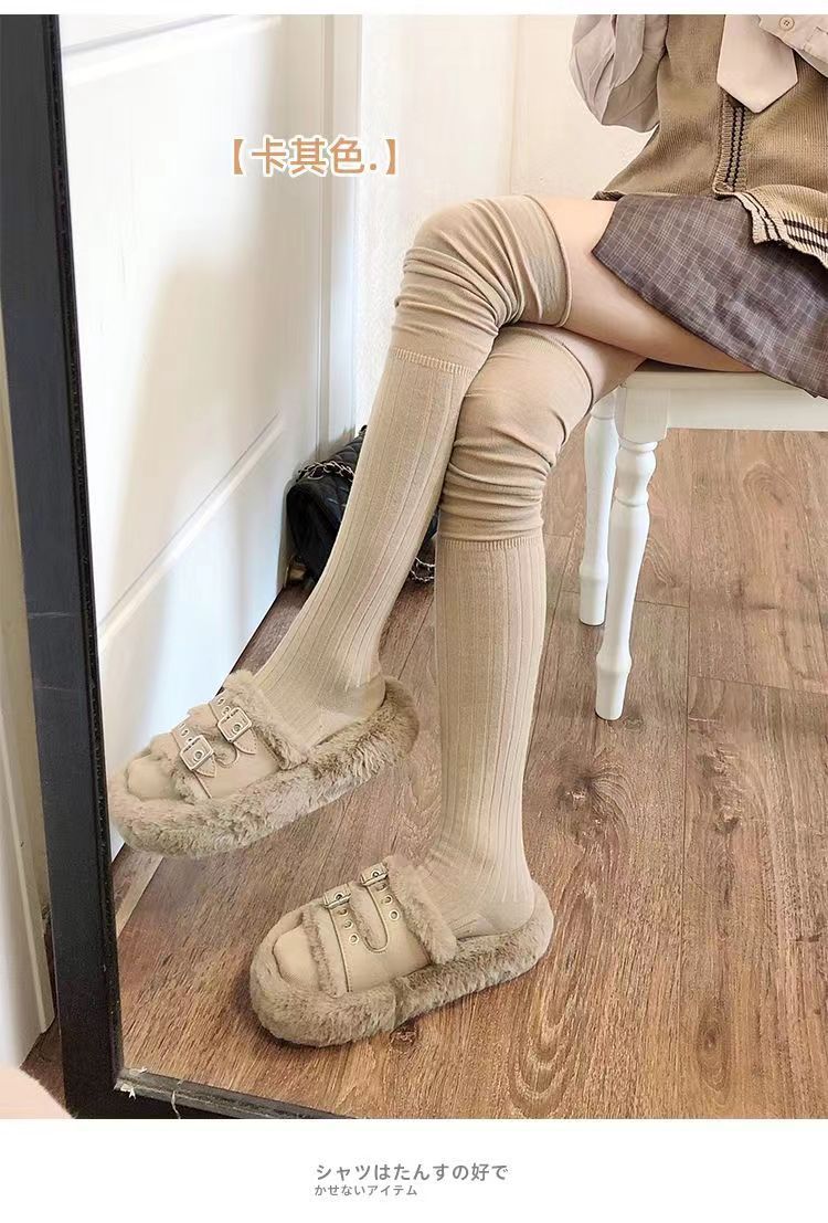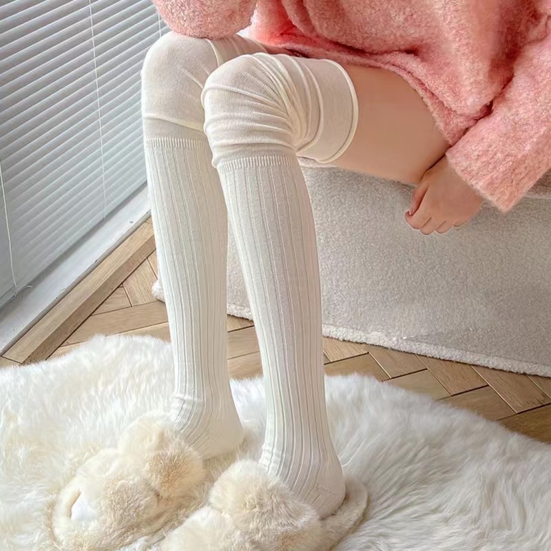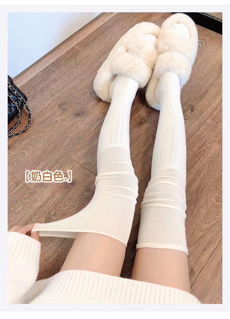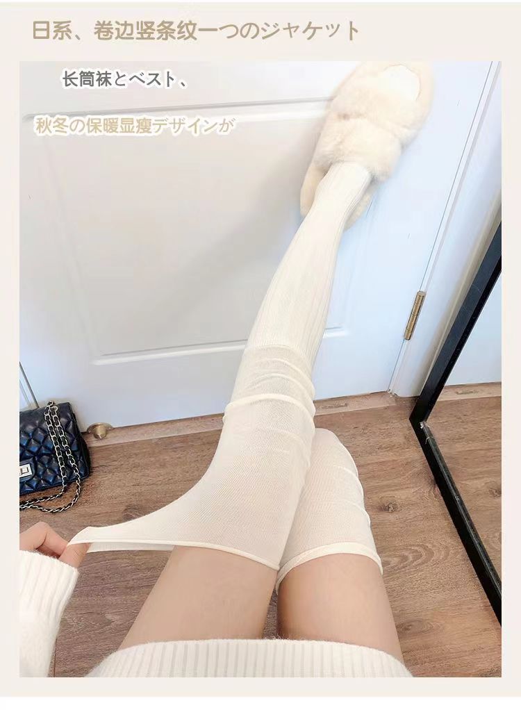 가을과 겨울 높은 스타킹 쌓인 스타킹 레이스 스티칭 단색 세로 패턴 다리 스타킹 슬리밍 모든 매치 바깥 착용 무릎 스타킹스토어 가기