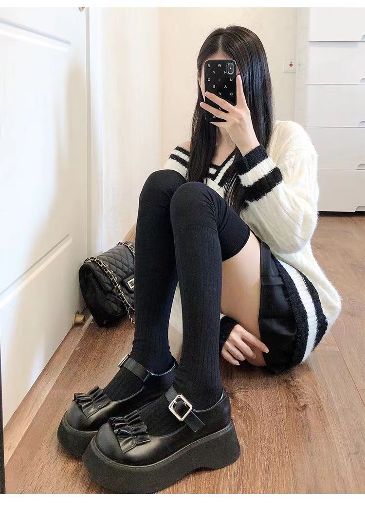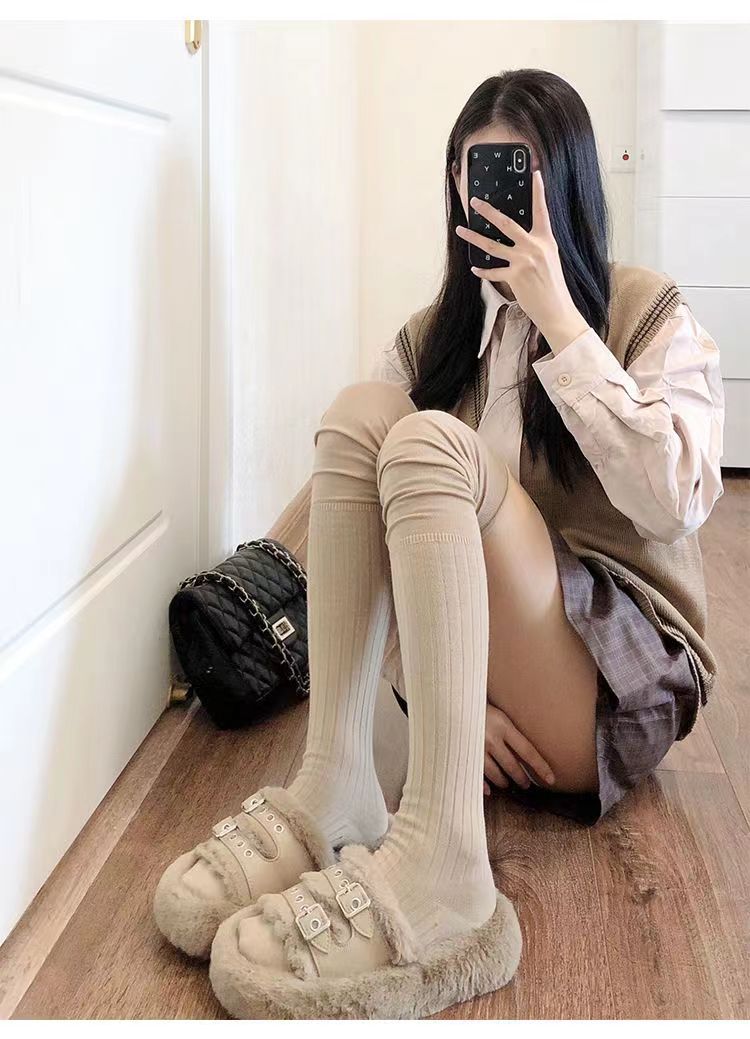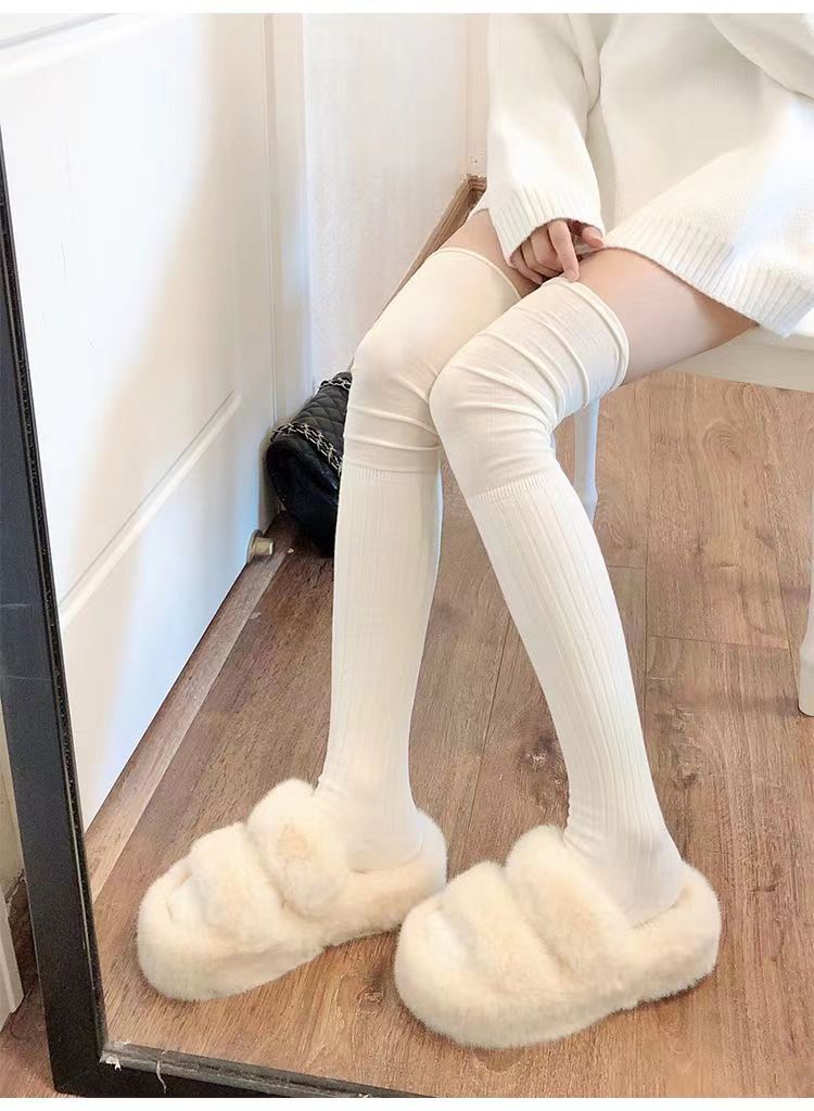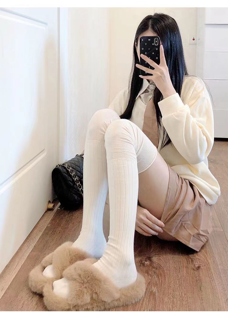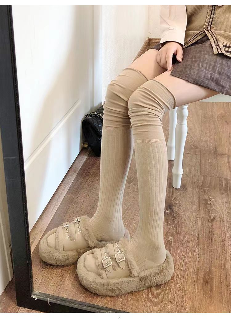 가을과 겨울 높은 스타킹 쌓인 스타킹 레이스 스티칭 단색 세로 패턴 다리 스타킹 슬리밍 모든 매치 바깥 착용 무릎 스타킹스토어 가기
