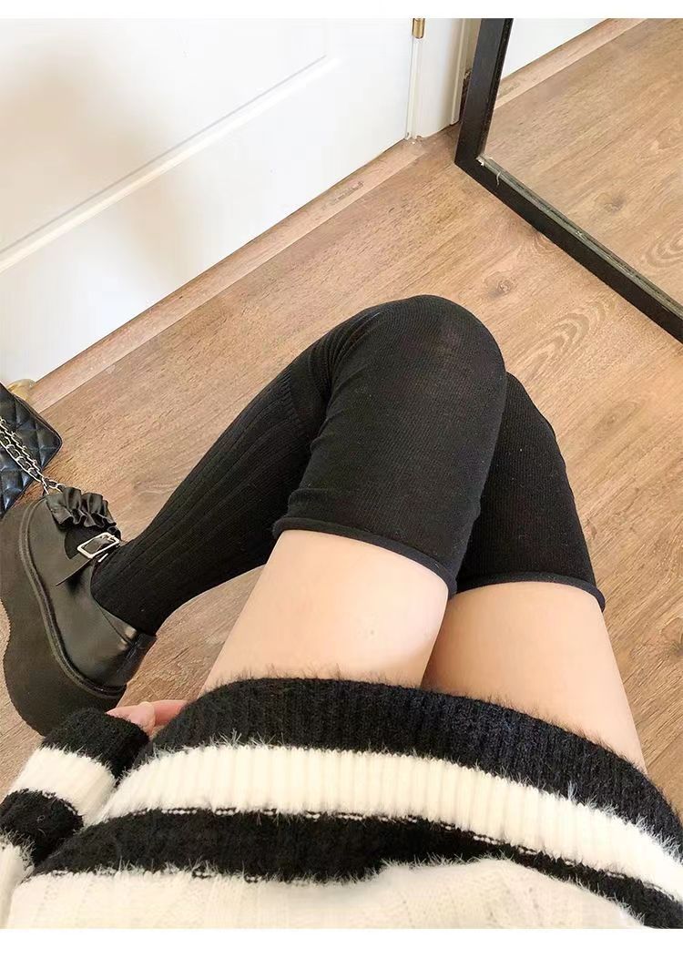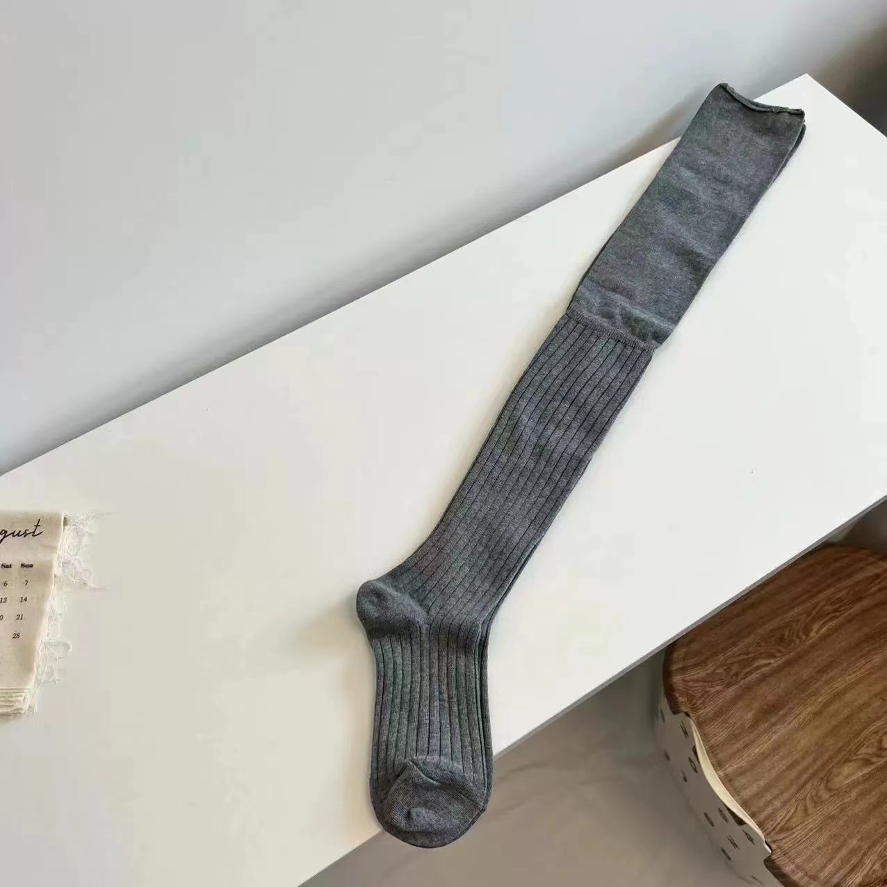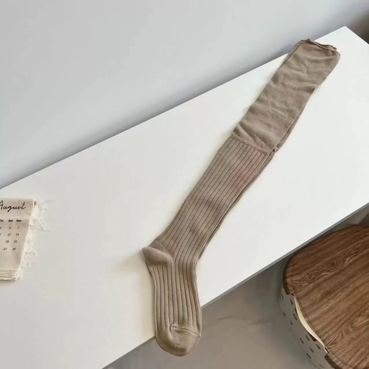 가을과 겨울 높은 스타킹 쌓인 스타킹 레이스 스티칭 단색 세로 패턴 다리 스타킹 슬리밍 모든 매치 바깥 착용 무릎 스타킹