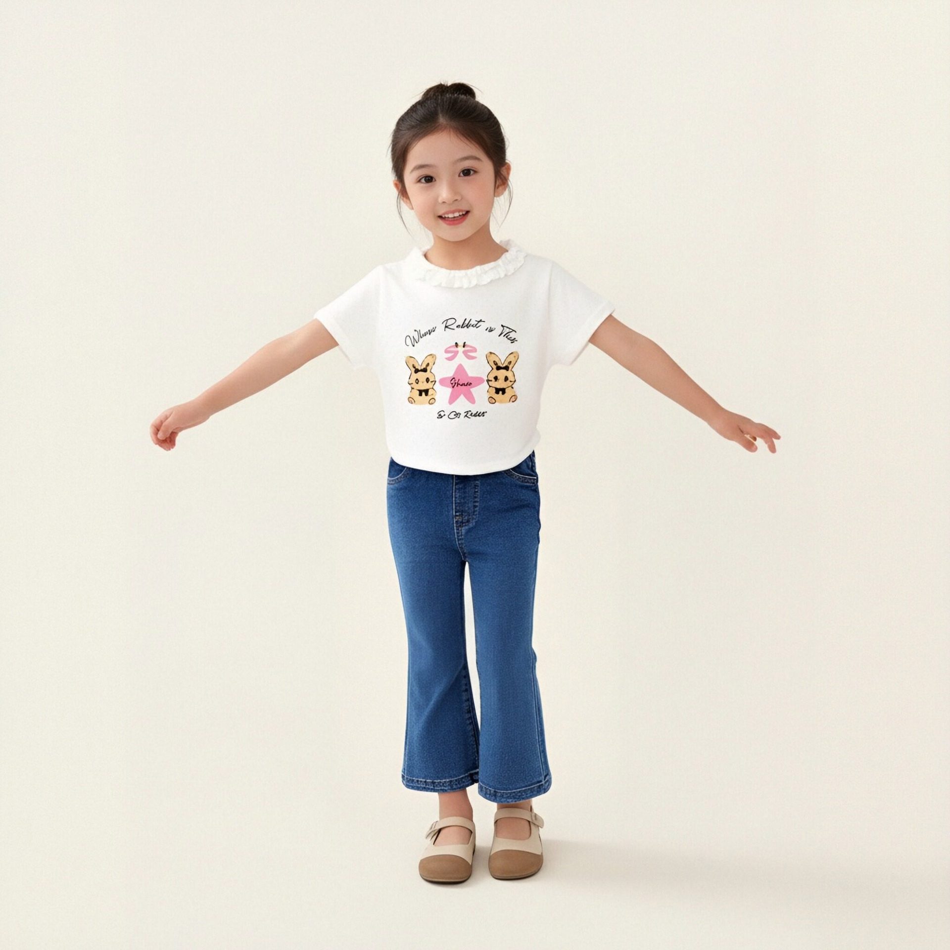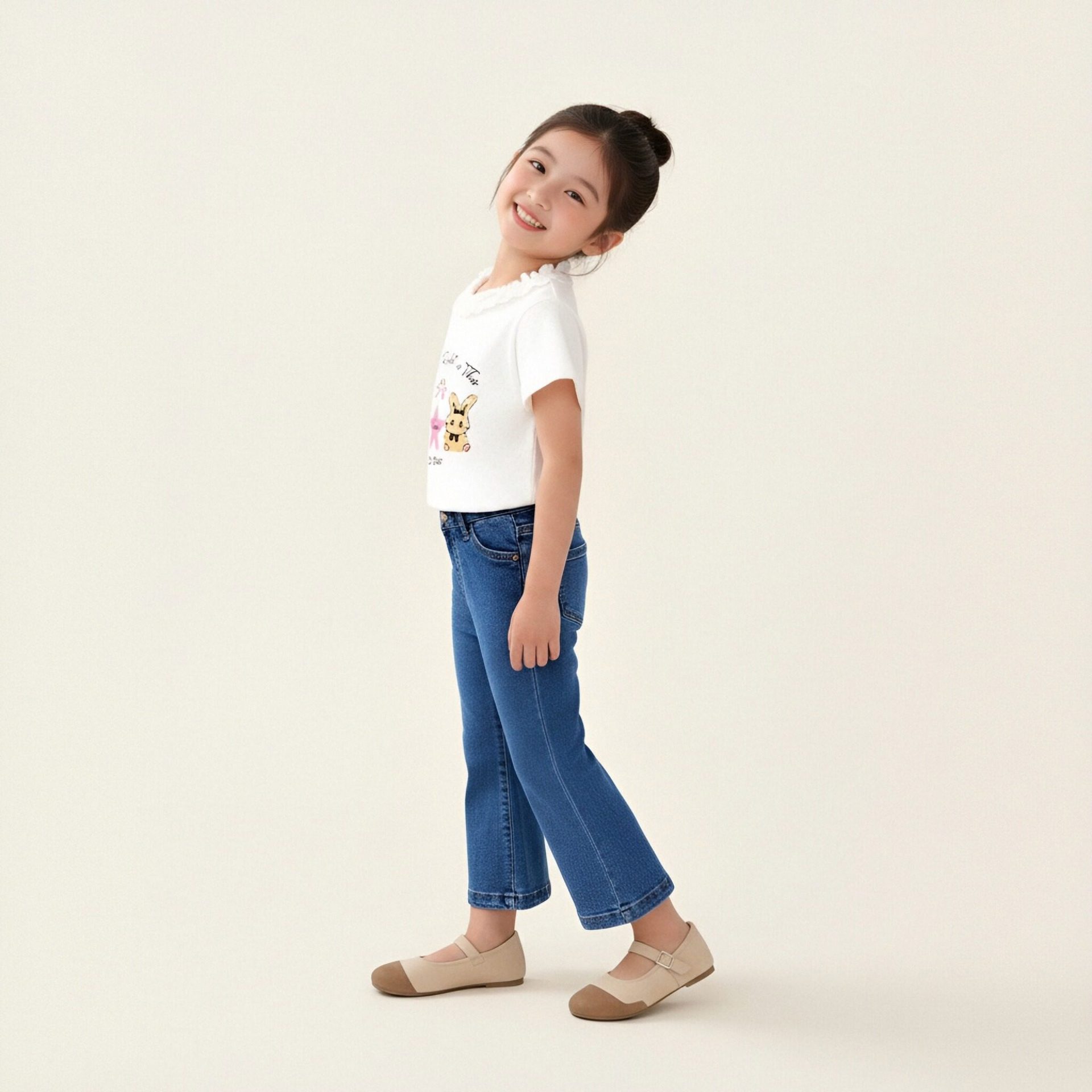 여자 봄, 가을 청바지 가을 옷 2022 새로운 어린이 한국 스타일 어린이 슬림 스트레치 벨 바닥 바지 도매스토어 가기