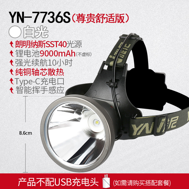 Yanni 7736s 헤드 라이트 강한 빛 충전식 슈퍼 밝은 장거리 헤드 마운트 손전등 긴 내구성 주도 광부의 램프
