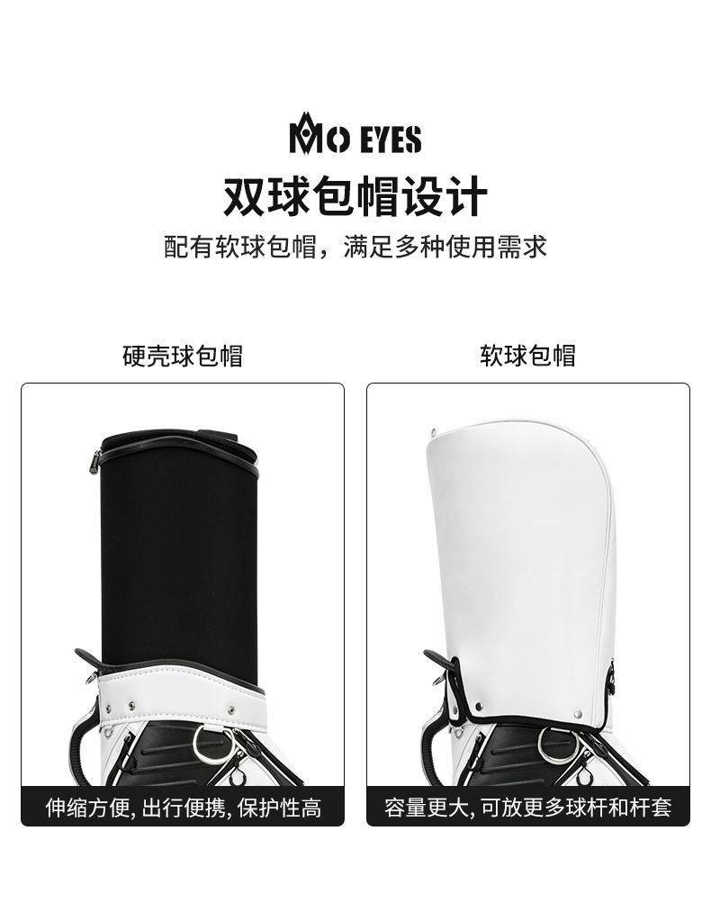 | 2 | 专利球框,可倒放球杆,避免球杆拥挤碰撞,杆头朝下,重心更低,球包推行更稳 | |||