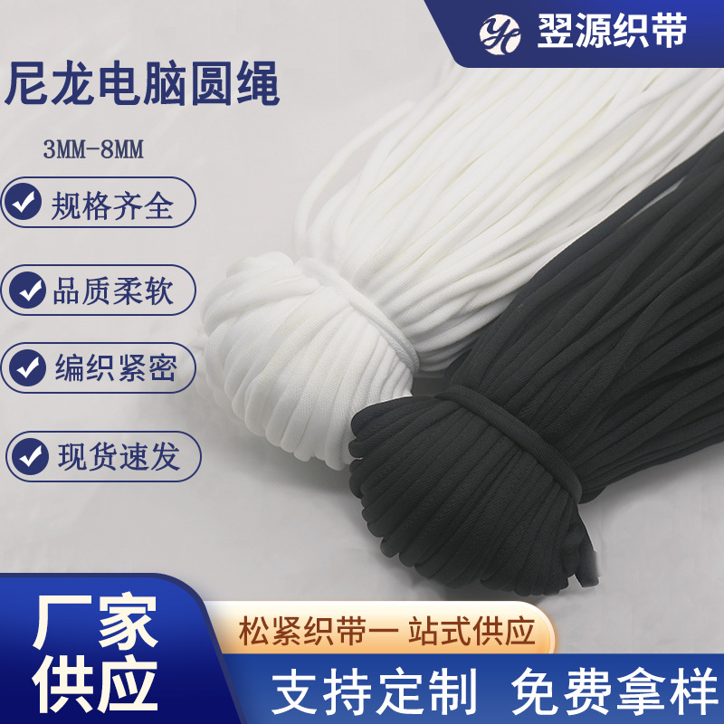 3-10MM 고탄성 폴리 에스터 자카드 컴퓨터 로프 코어 스펀 바지 모자 라운드 로프 장갑 휴대 전화 방수 가방 끈 졸라 매는 끈