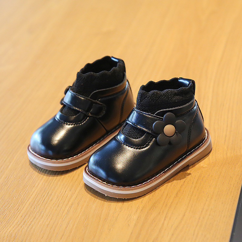 여자 마틴 부츠 겨울 새로운 아기 공주 신발 어린이 가죽 신발 부드러운 단독 미끄럼 방지 발목 부츠 유아 신발