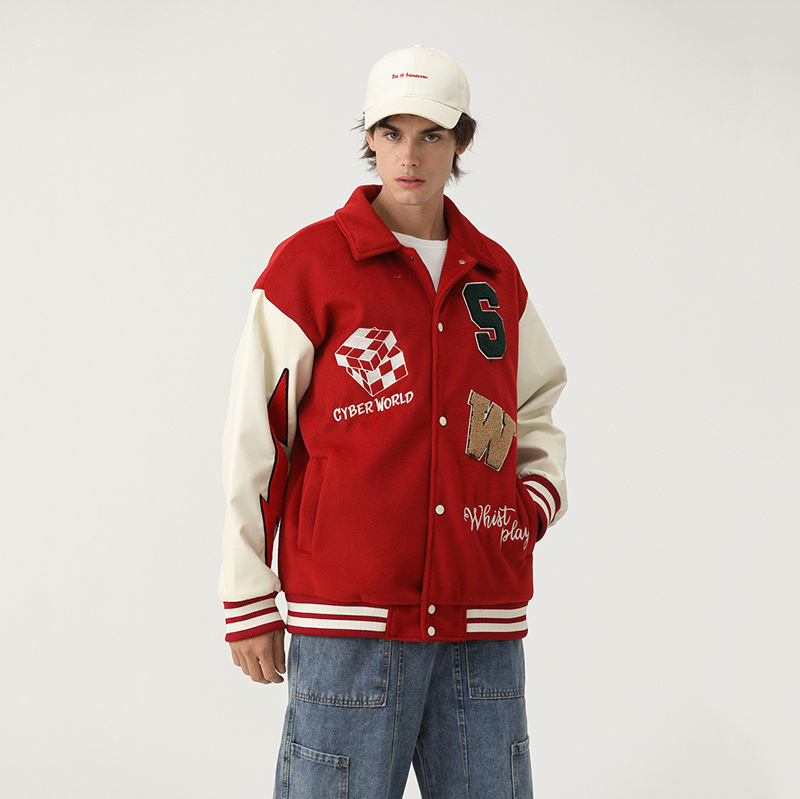 [커스텀 링크] 맵에 커스텀 컬러 로고 패브릭 패션 트렌드 코트 남성 패션 브랜드 야구 자켓