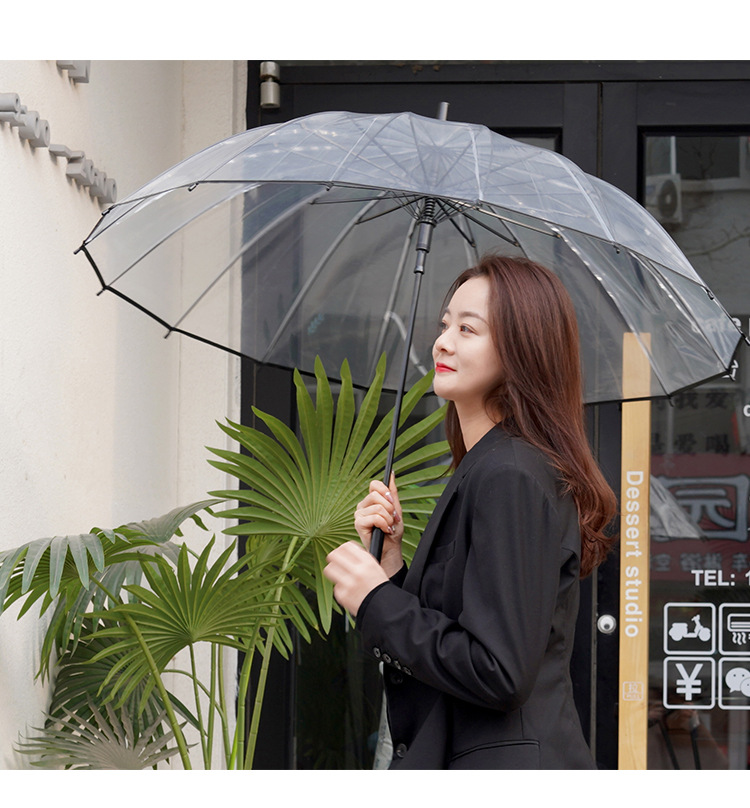 업그레이드 및 강화 16 본 자동 솔리드 투명 우산 긴 손잡이 후크 대형 더블 여성용 화이트 사이버 인기 우산스토어 가기