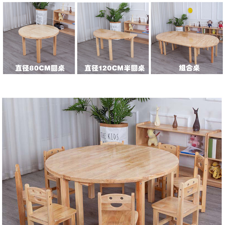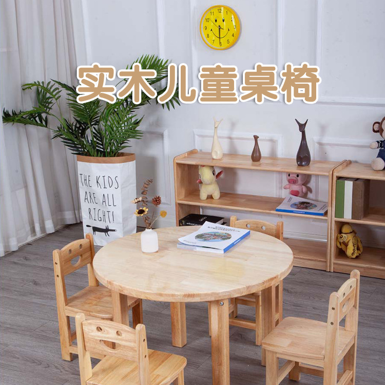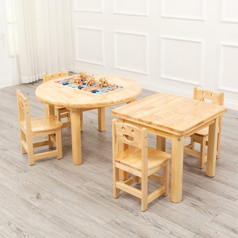 유치원 단단한 나무 테이블과 의자 원형 테이블 학생 식탁 사각 책상 어린이 가정 학습 테이블과 의자 세트