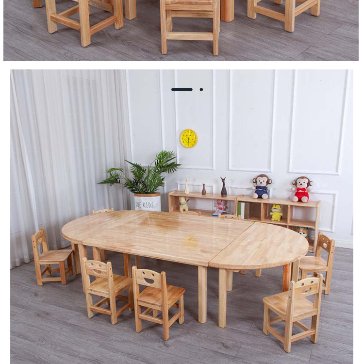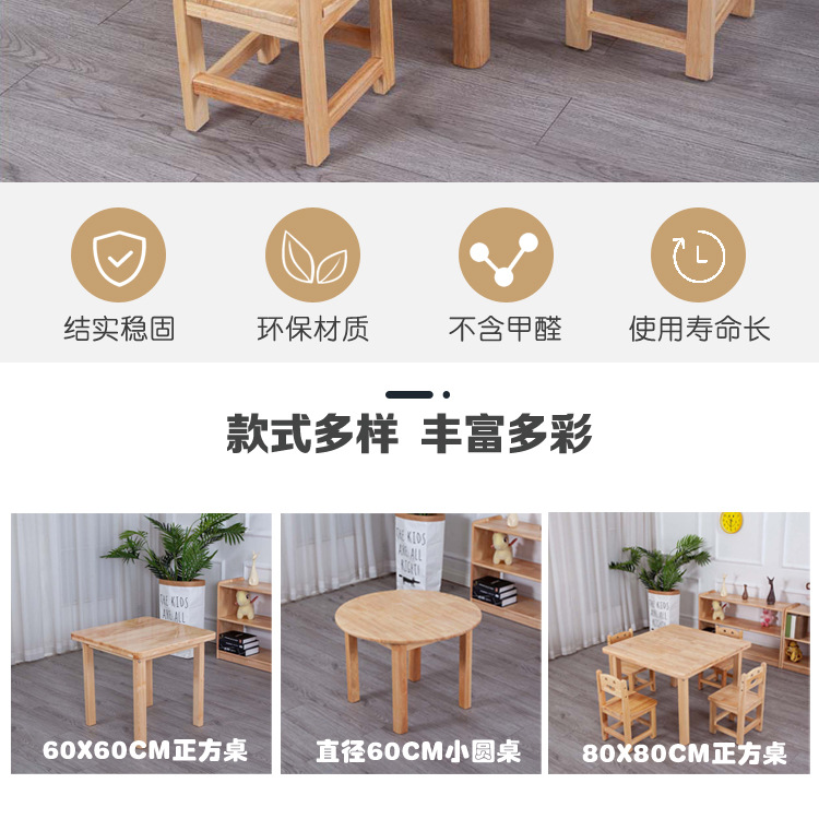 유치원 단단한 나무 테이블과 의자 원형 테이블 학생 식탁 사각 책상 어린이 가정 학습 테이블과 의자 세트스토어 가기