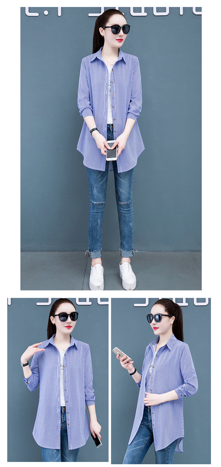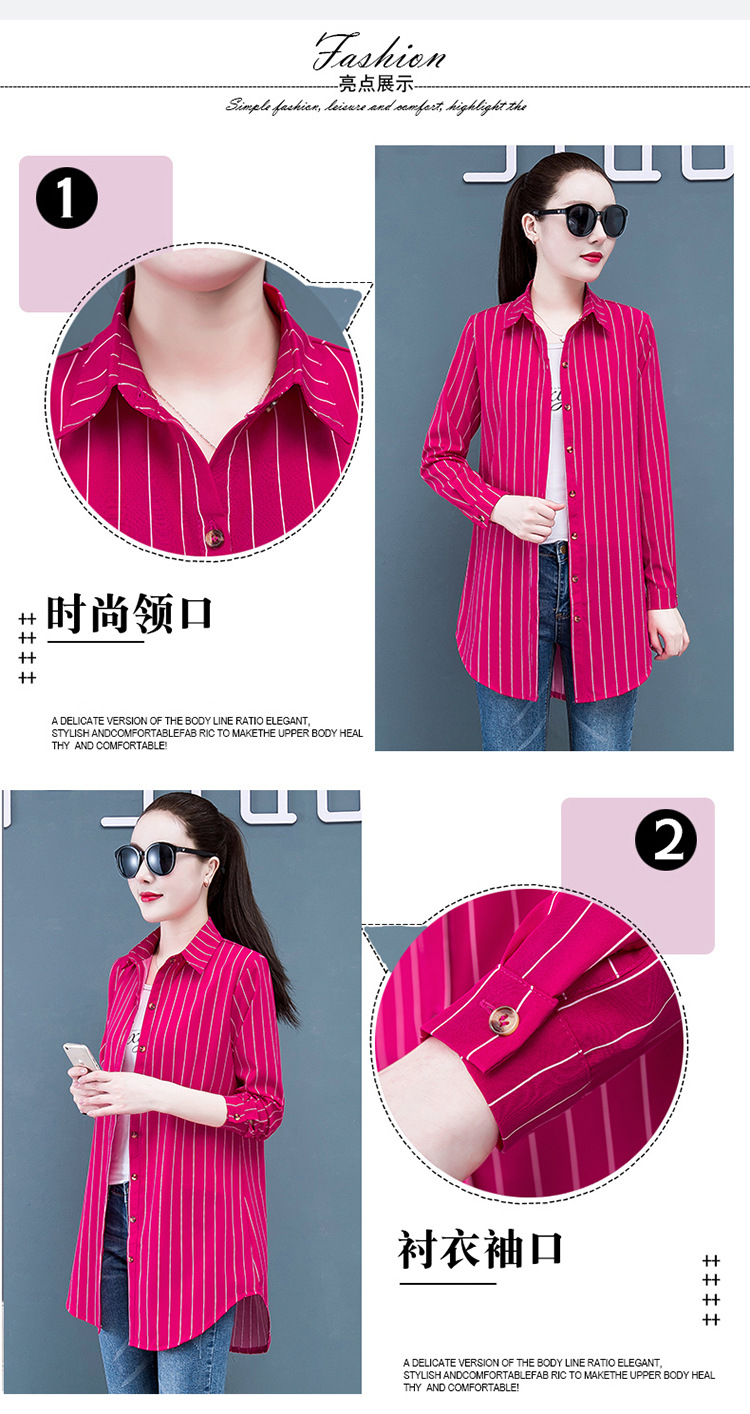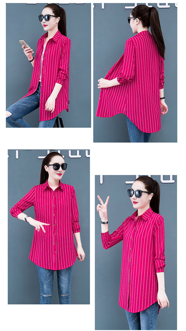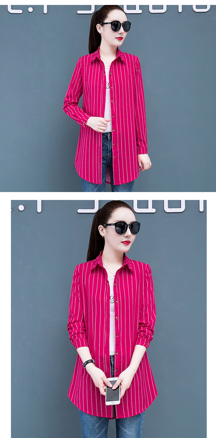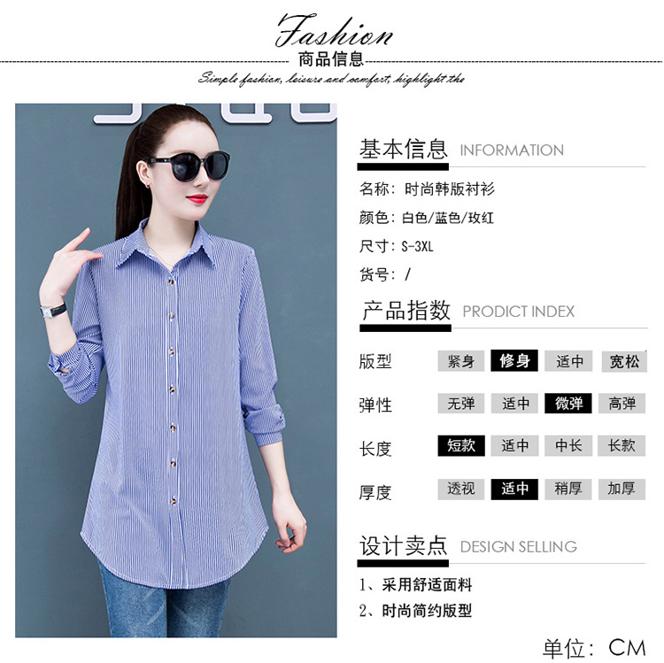 흰색 셔츠 여자의 긴 소매 중간 길이 한국어 스타일 bf 스타일 섹시 잠옷 스트라이프 블루 레드 느슨한 슬림 셔츠 원피스스토어 가기