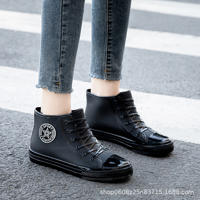 패션 짧은 튜브 방수 신발 여성 성인 미끄럼 방지 주방 레인 부츠 기모 따뜻한 학생 미끄럼 방지 고무 신발 도매 세대