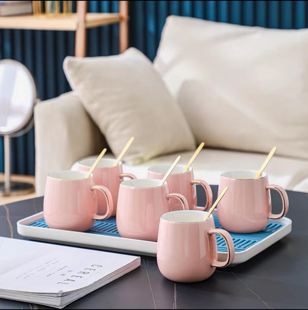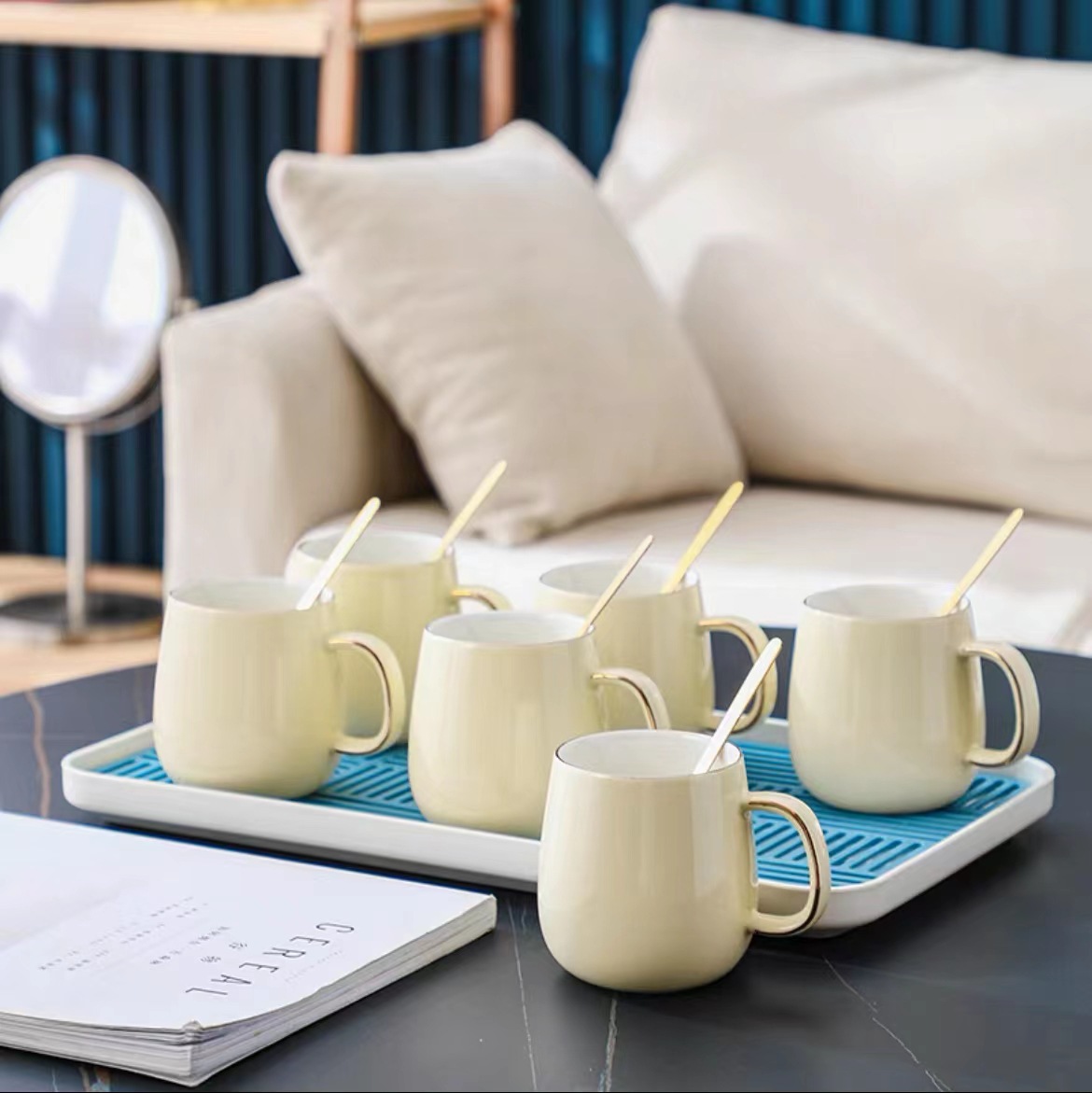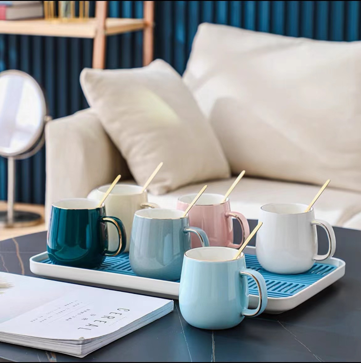 가벼운 고급 컵 높은 모양의 물 컵 가정용 세라믹 컵 가족 세트 차 컵 찻잔 사무실 컵 거실 컵