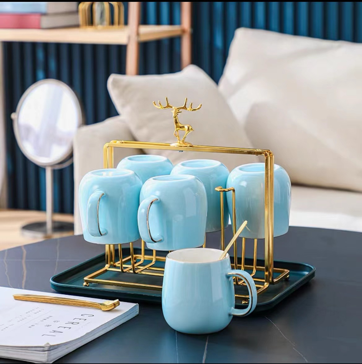 • 큰 배꼽 라인 블루 6 컵 + 사슴 랙 무료 플레이트 무료 스푼