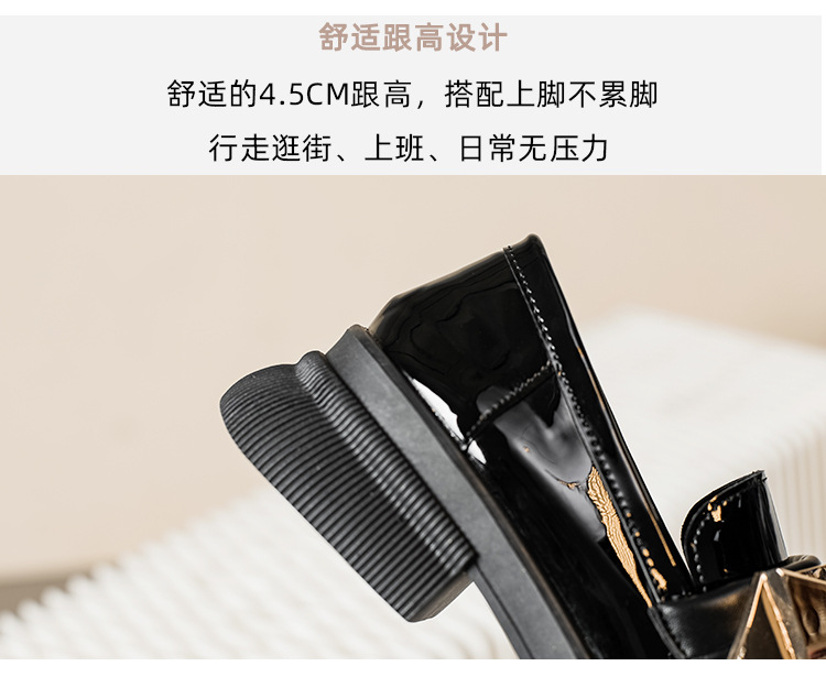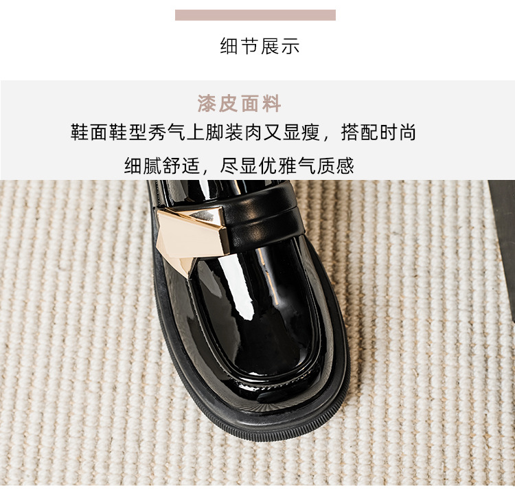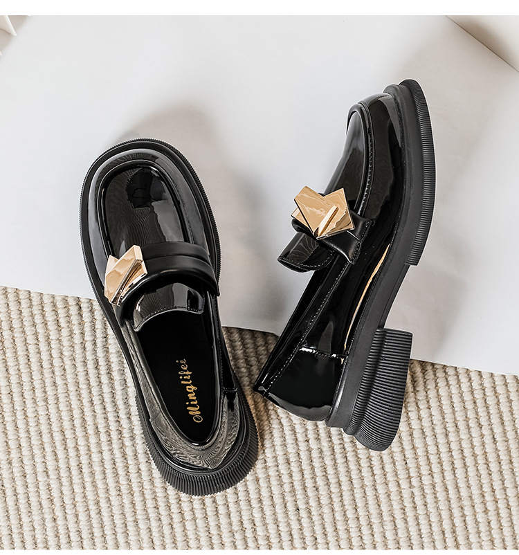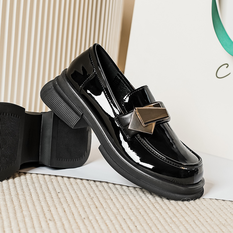 여성을위한 두꺼운 밑창 작은 가죽 신발 2025 새로운 영국 스타일 복고풍 검은 에나멜 가죽 두꺼운 굽 로퍼 대형 41 ~ 43