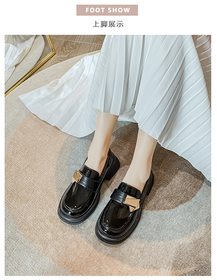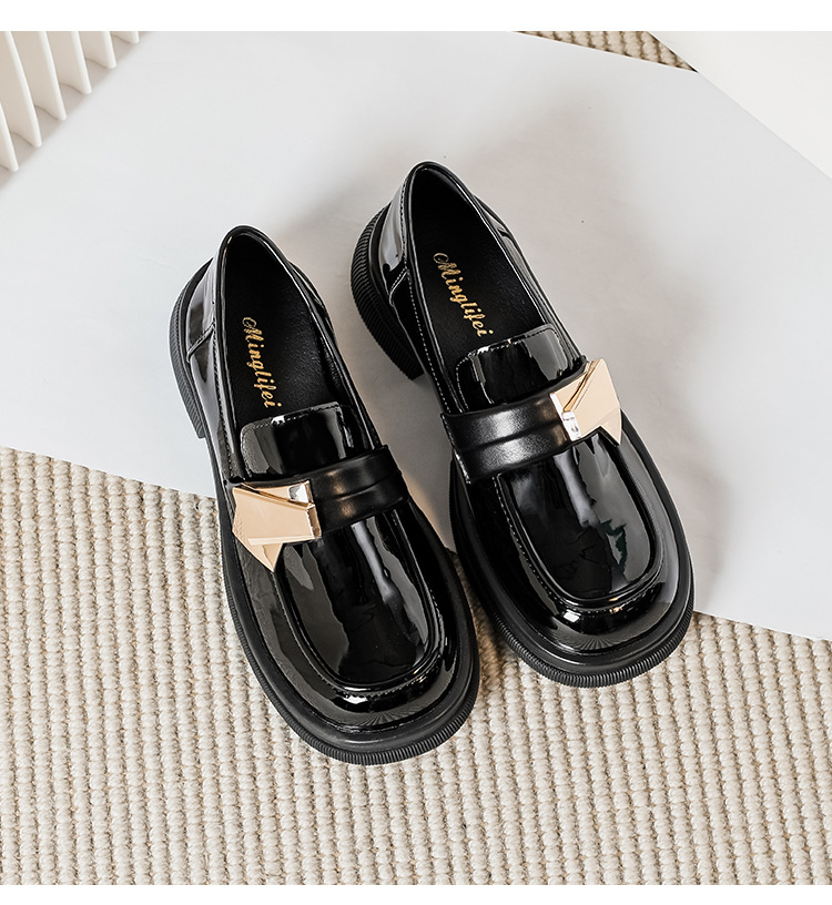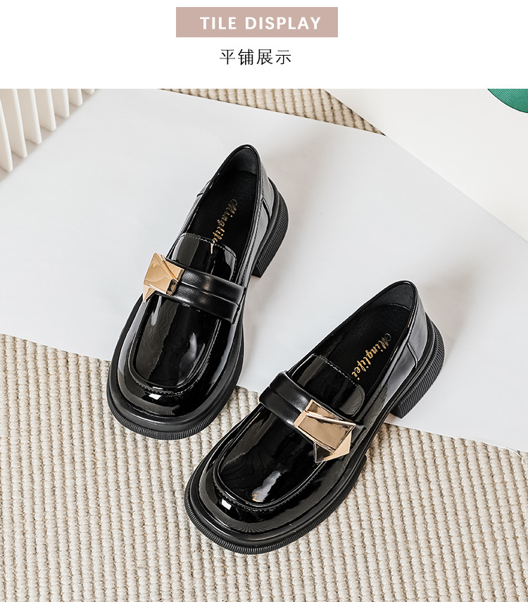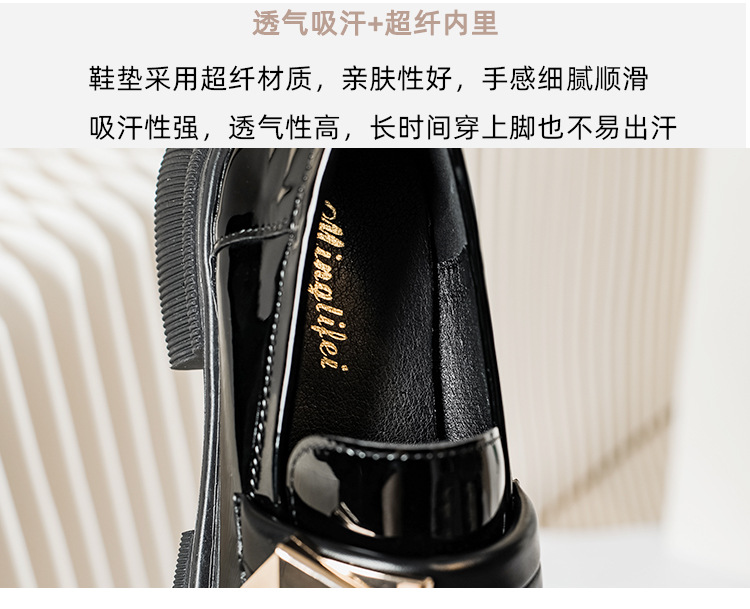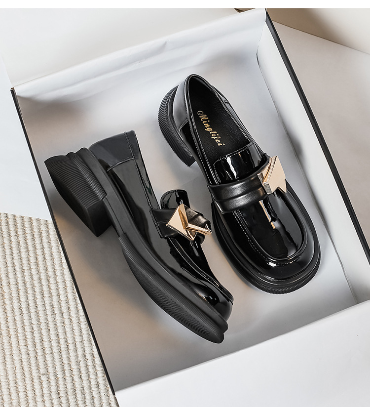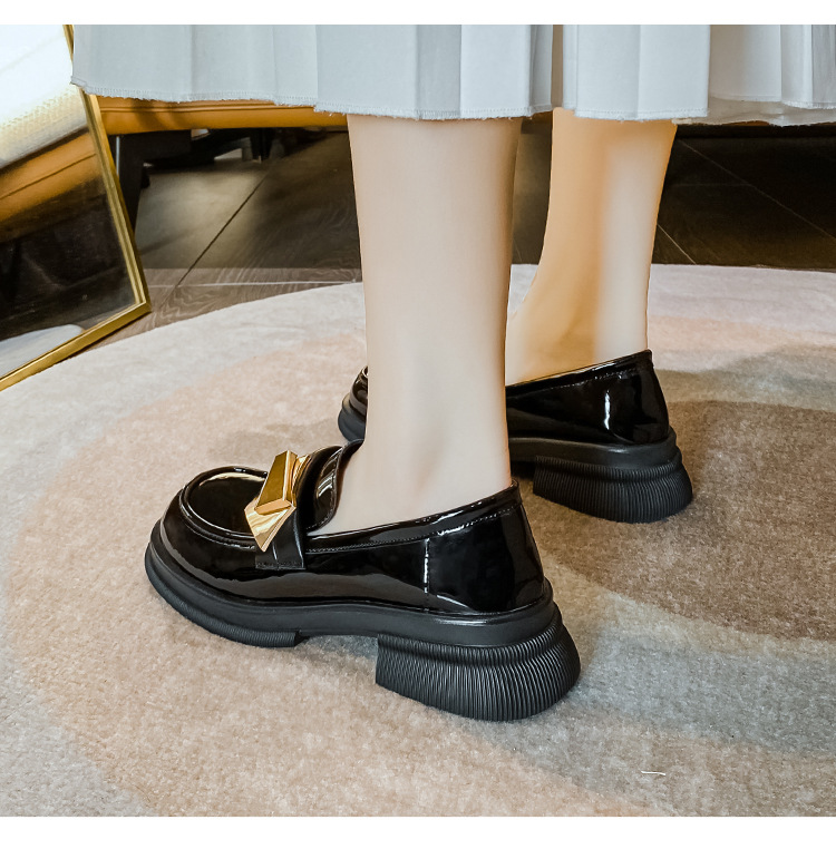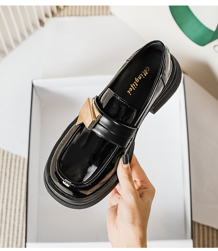 여성을위한 두꺼운 밑창 작은 가죽 신발 2025 새로운 영국 스타일 복고풍 검은 에나멜 가죽 두꺼운 굽 로퍼 대형 41 ~ 43스토어 가기