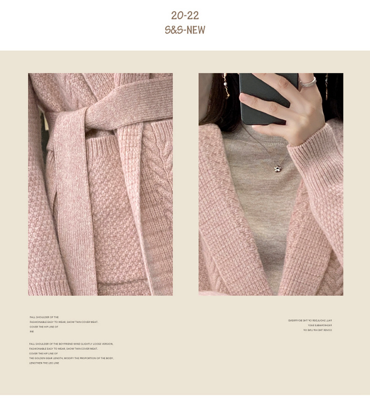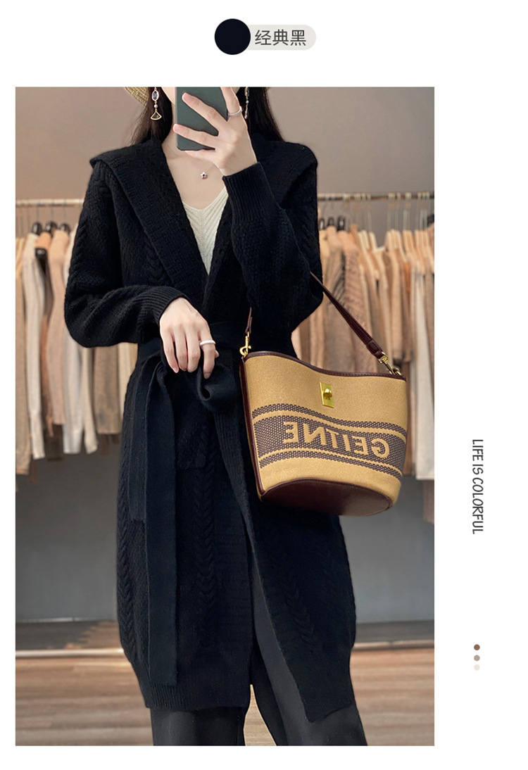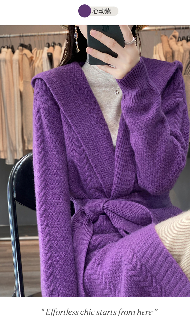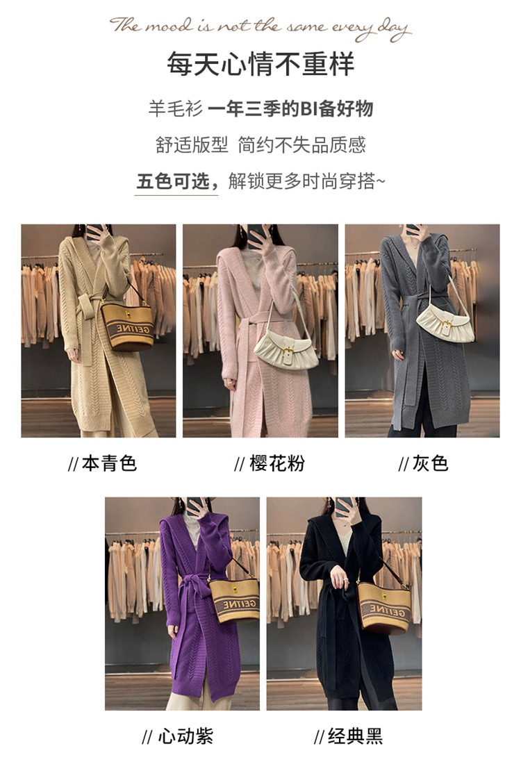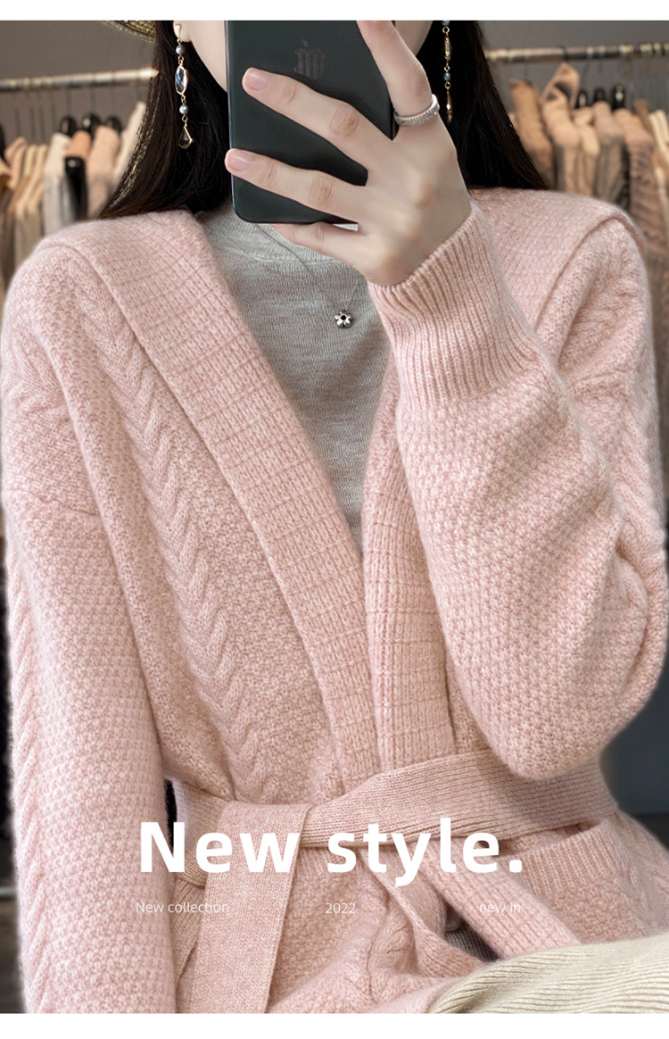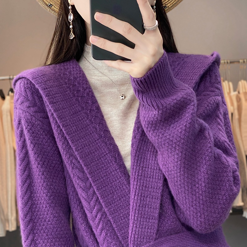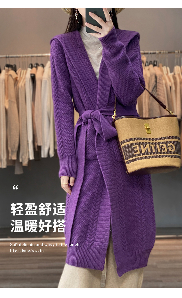 무거운 가을과 겨울 두꺼운 울 카디건 여성의 디자인 감각 느슨한 전체 울 니트 후드 벨트 게으른 스타일 코트스토어 가기