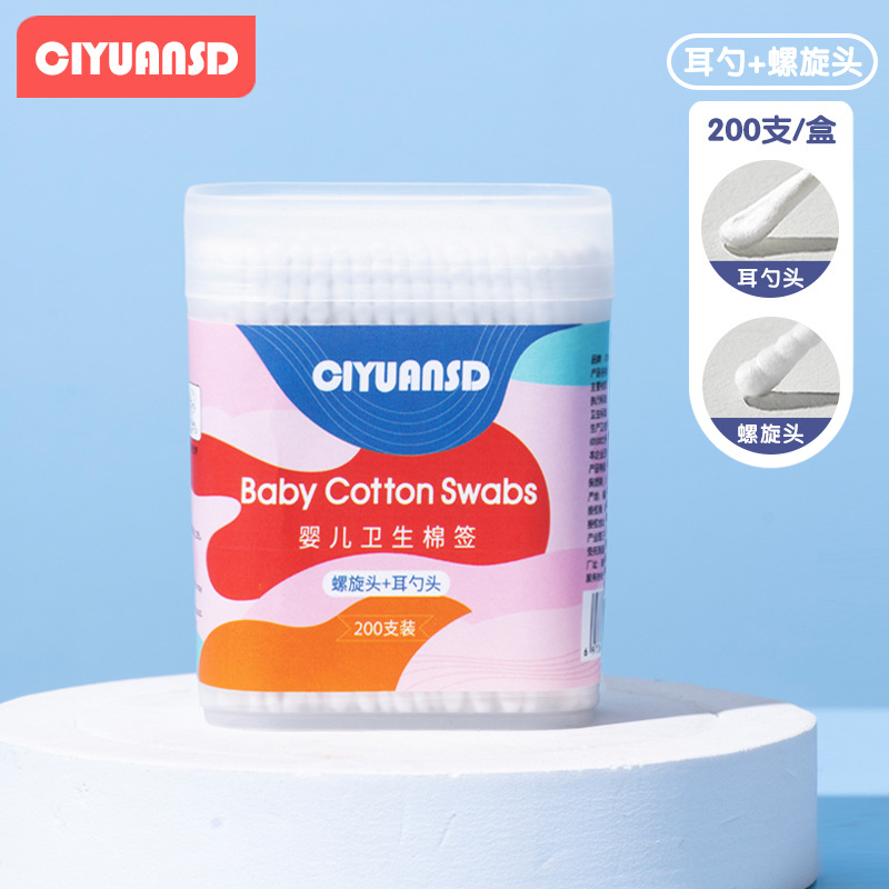 귀 따기용 일회용 양면 면봉, 신생아용 순면 귀 청소 스푼, 아기 및 어린이용 보관 상자 면봉 포함스토어 가기