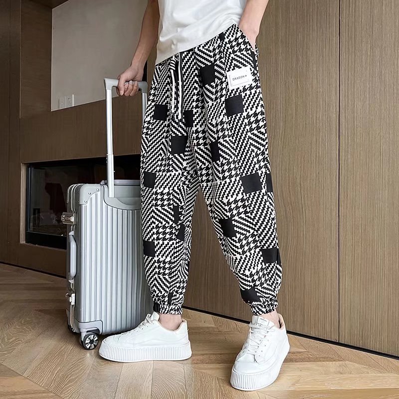 나인 포인트 팬츠 트렌디 브랜드 Yipi Shuai-fried 스트리트 남성 여름 얇은 하이 엔드 센스 인터넷 레드 격자 무늬 캐주얼 바지 여름 나인 포인트 팬츠