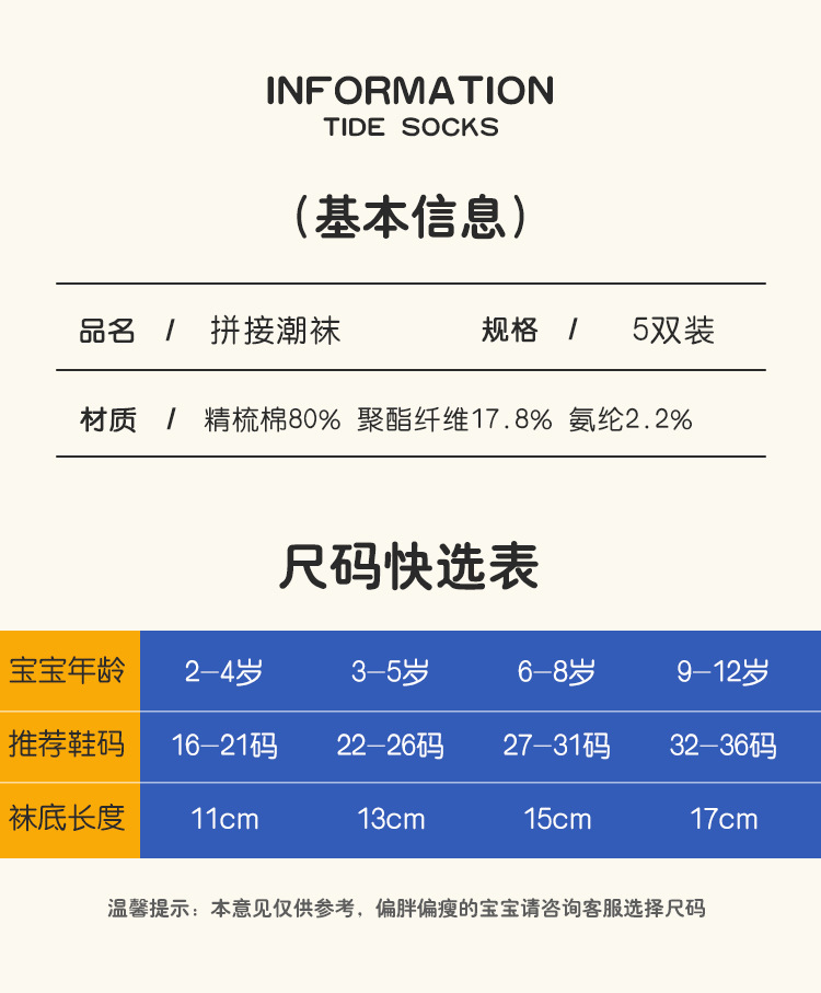 • M 3-5 세 22-26 야드 양말 길이 13cm