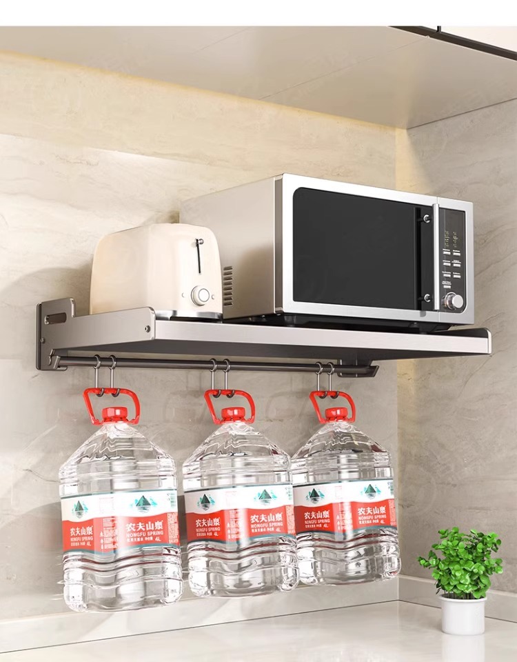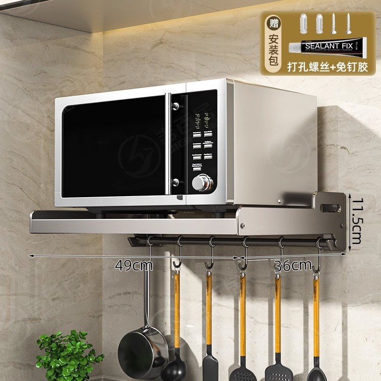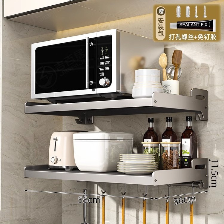 펀치 없는 주방 수납 랙 벽걸이형 전기 밥솥 전자 레인지 수납 랙 수납 브래킷 걸이스토어 가기