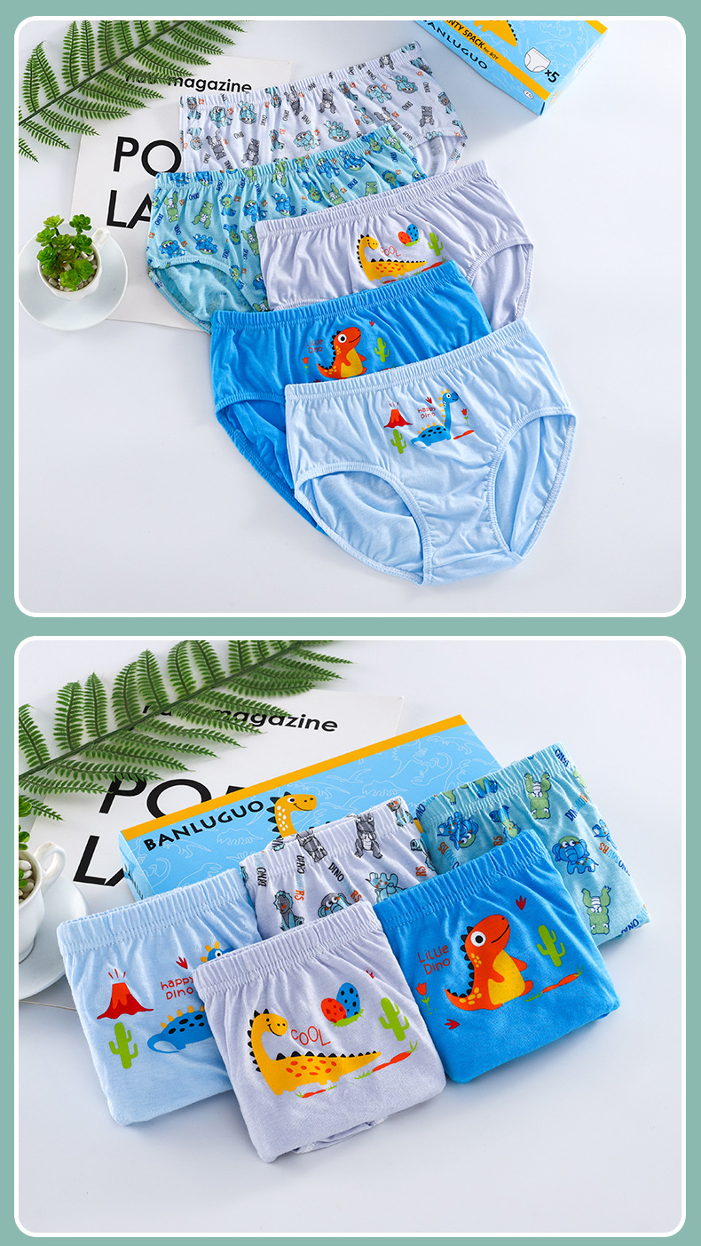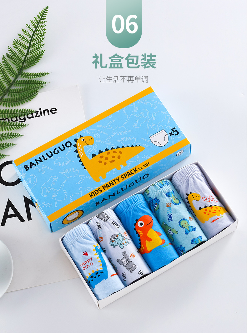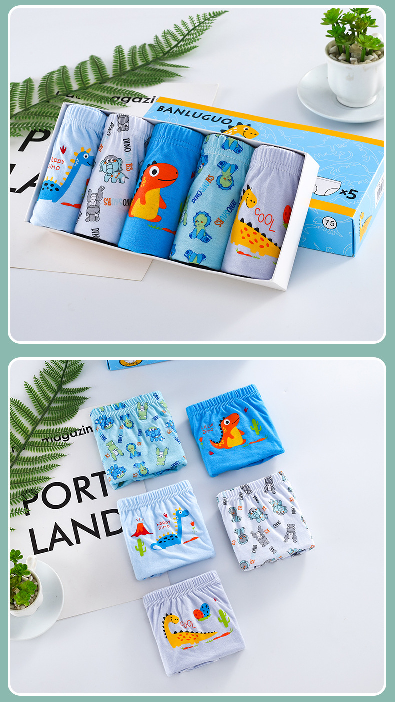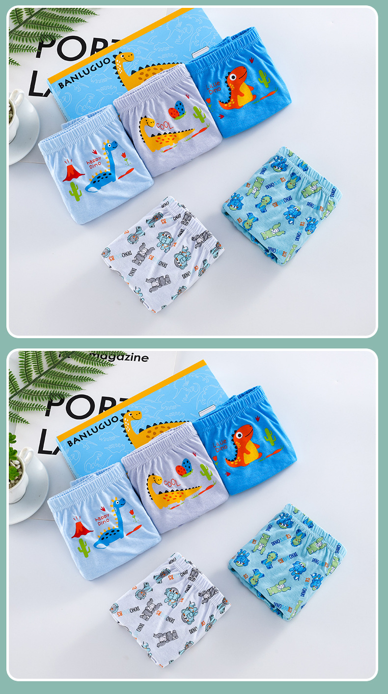 다섯 소년 '면 공룡 프린트 어린이 속옷 만화 박스형 면 팬티 한국 아기 반바지