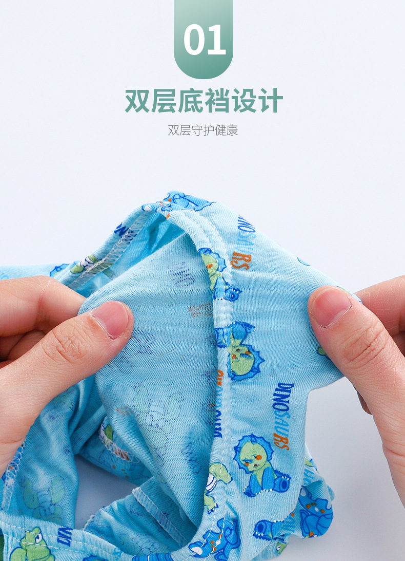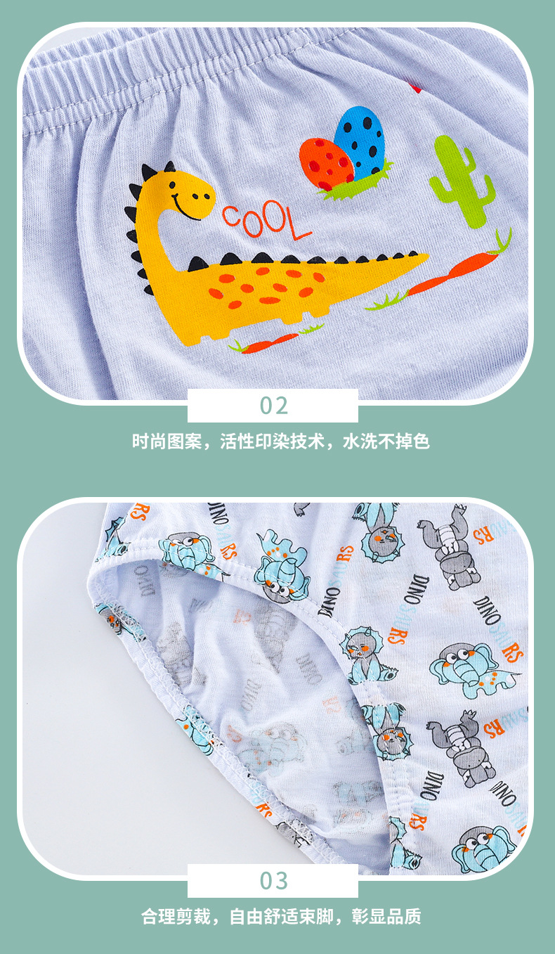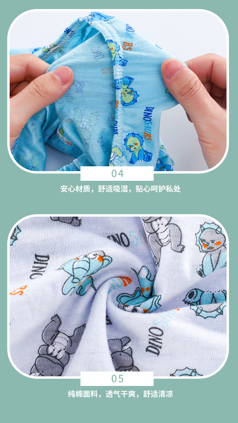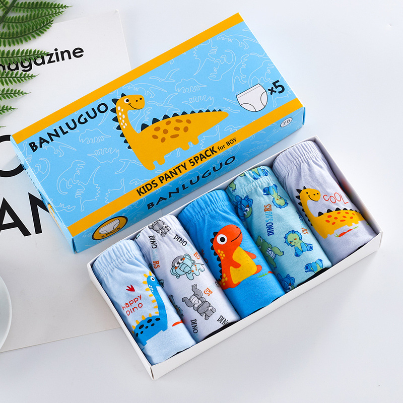 다섯 소년 '면 공룡 프린트 어린이 속옷 만화 박스형 면 팬티 한국 아기 반바지