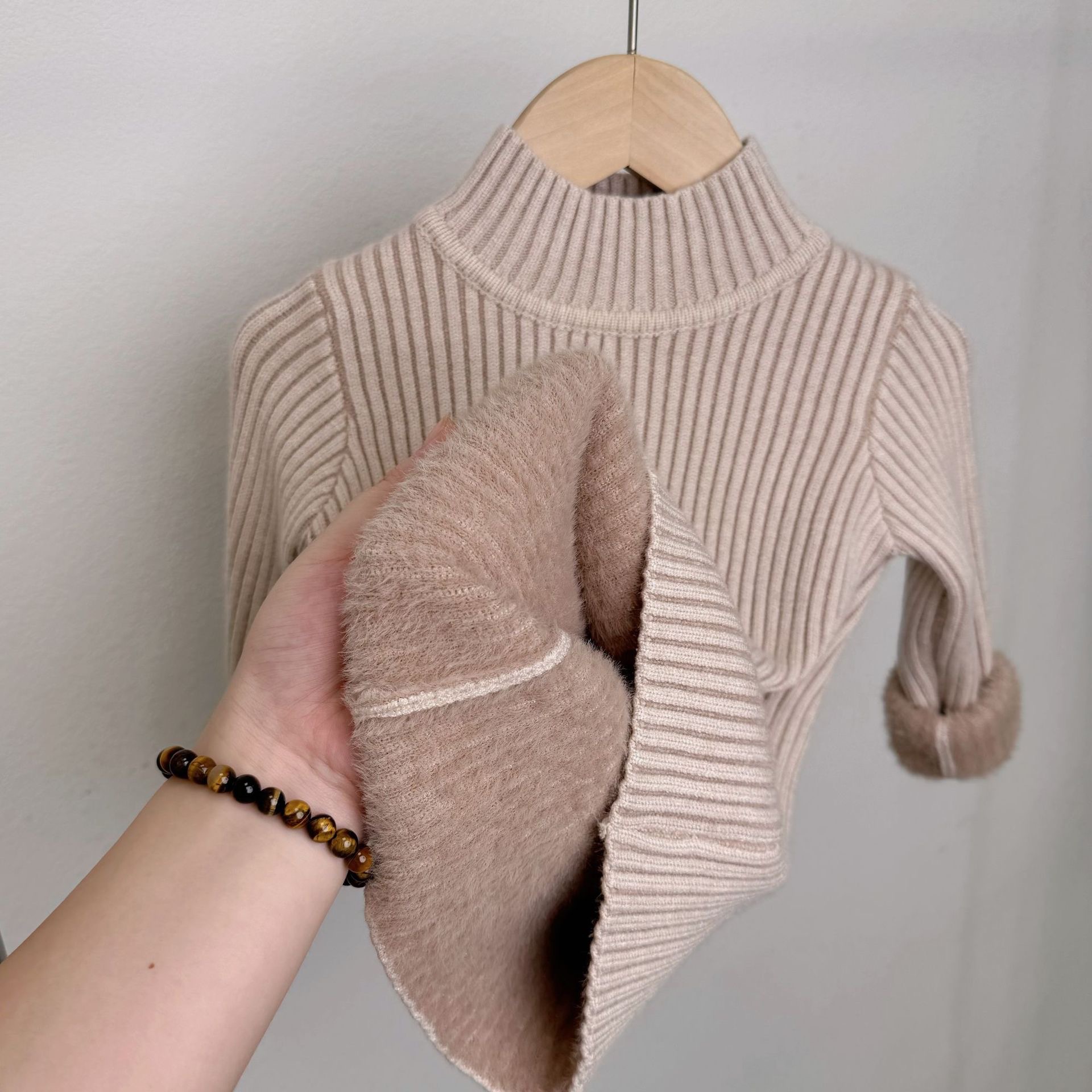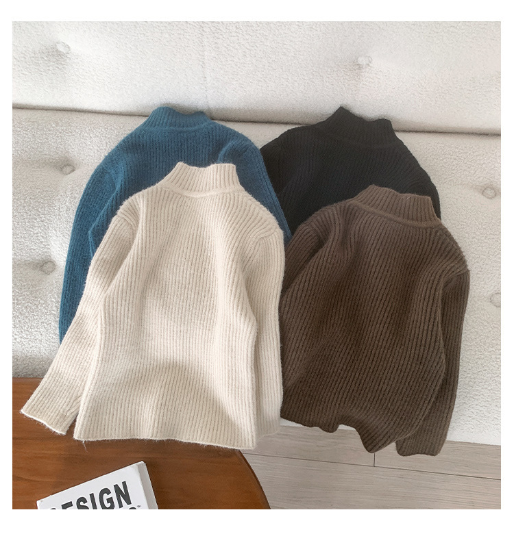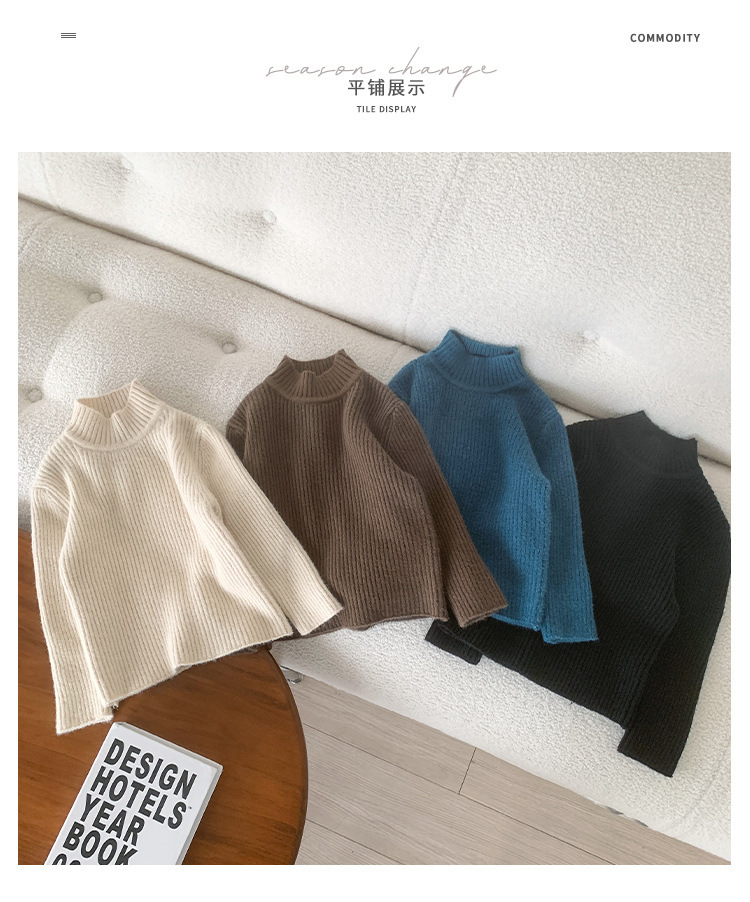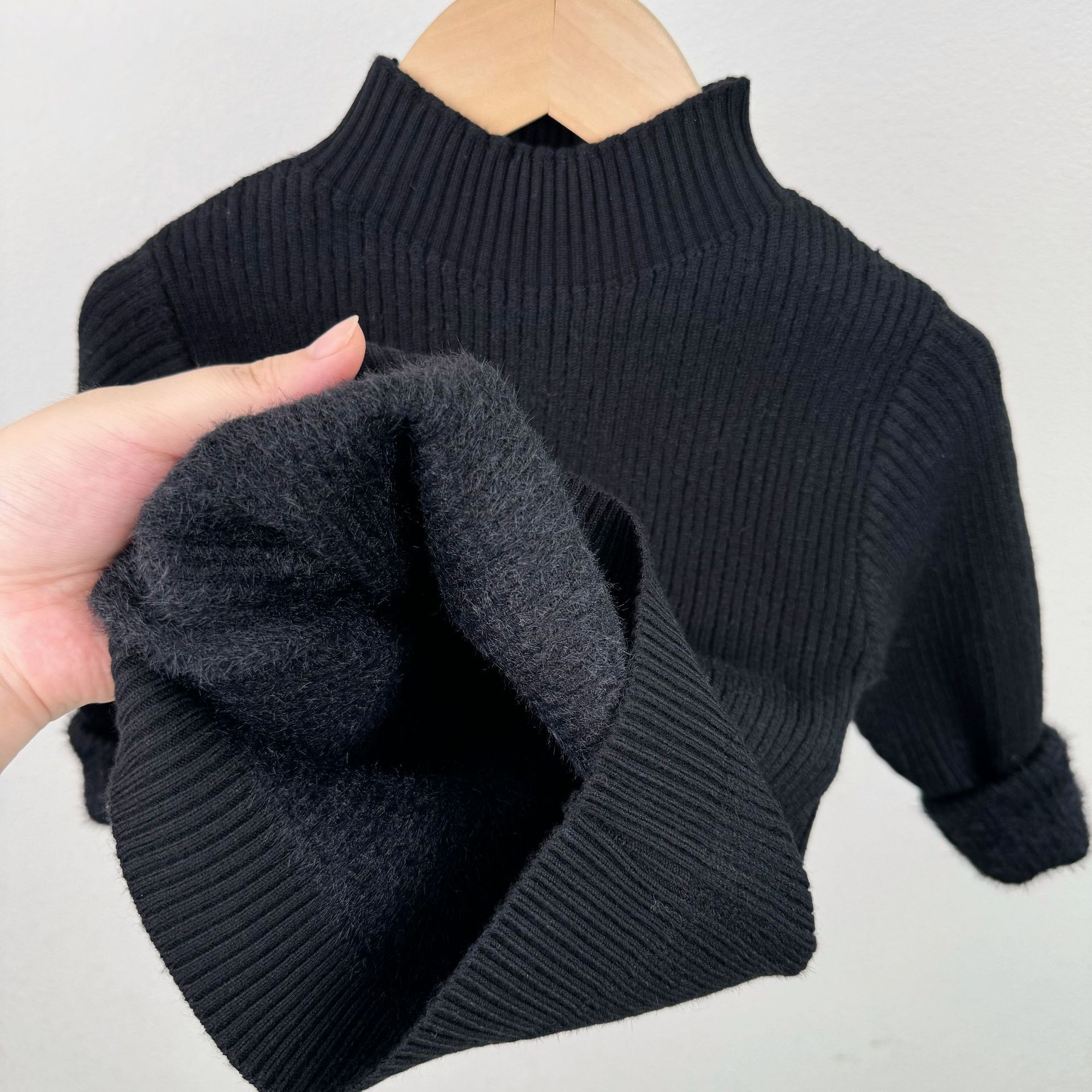 2025 겨울 아동복 한국 스타일 반하이넥 플리스 안감 두꺼운 스웨터 남아용 단색 다용도 긴팔 풀오버스토어 가기