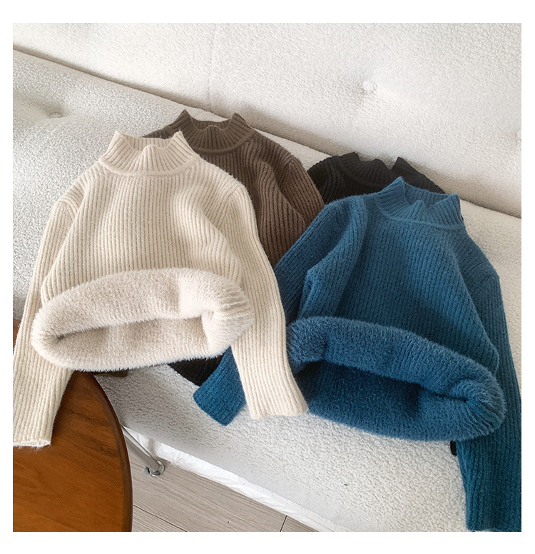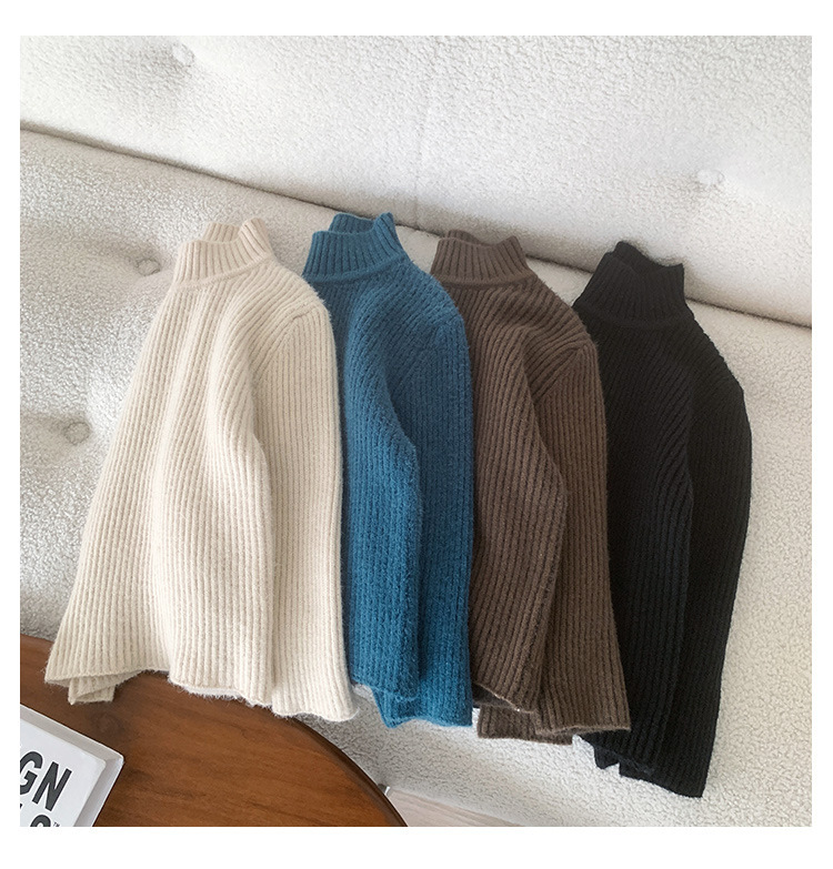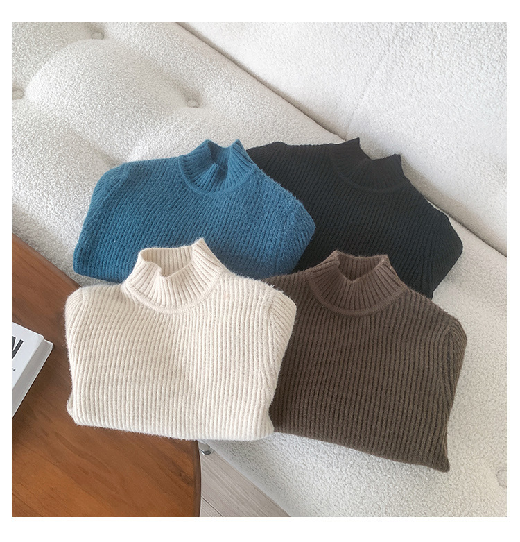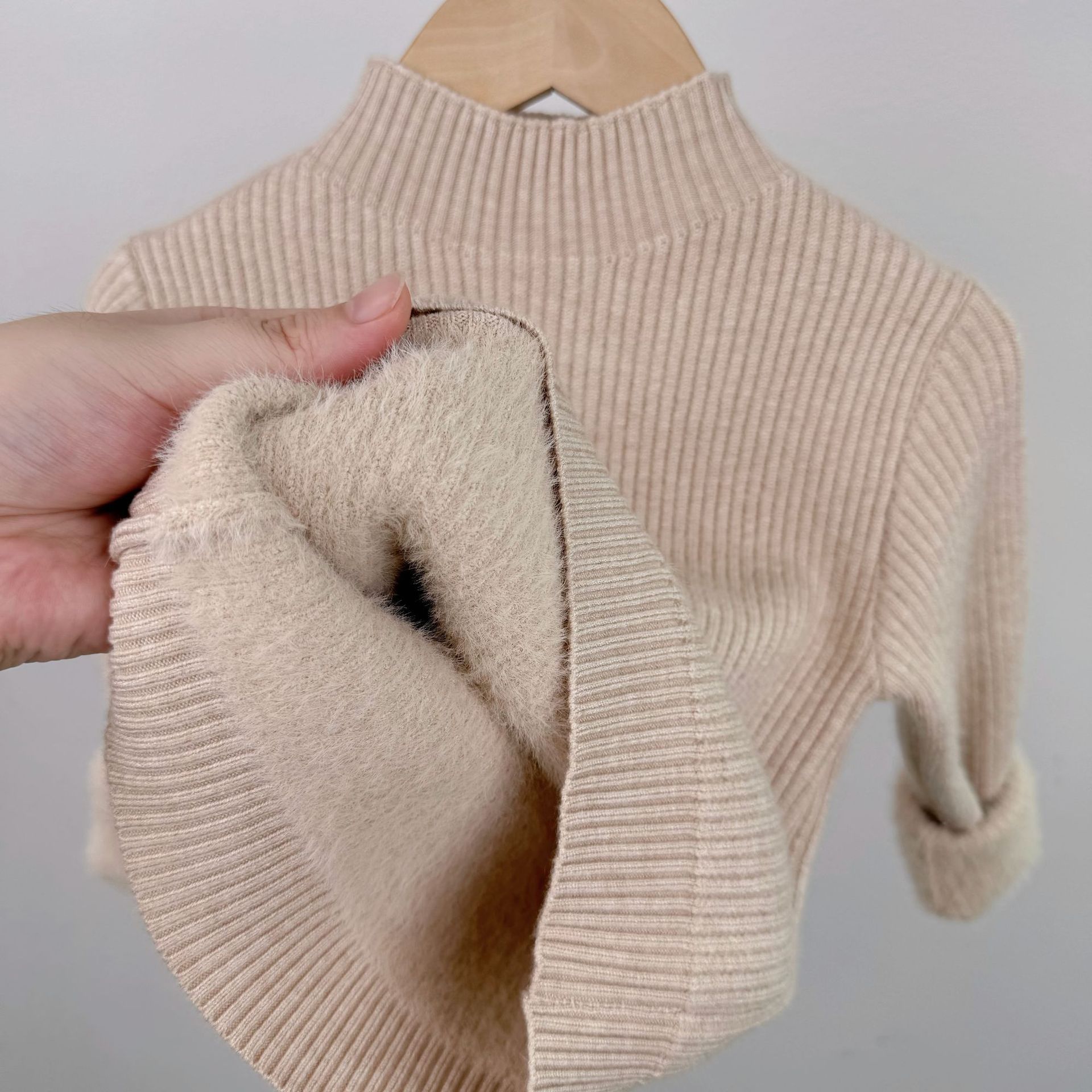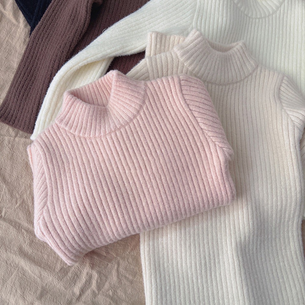 2025 겨울 아동복 한국 스타일 반하이넥 플리스 안감 두꺼운 스웨터 남아용 단색 다용도 긴팔 풀오버스토어 가기