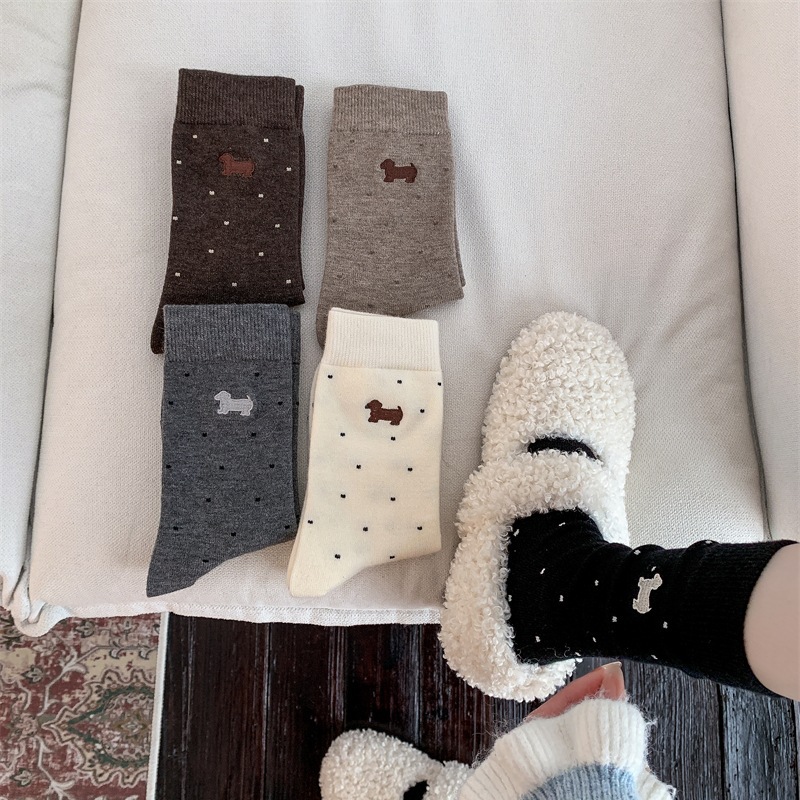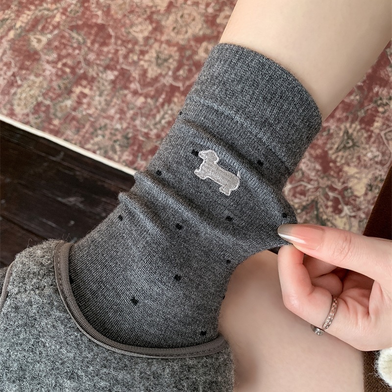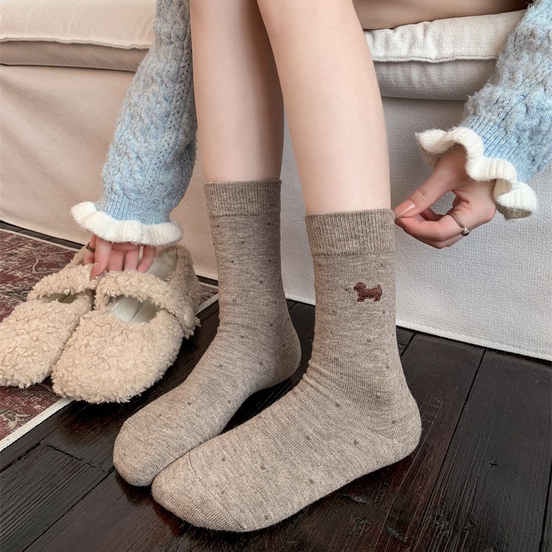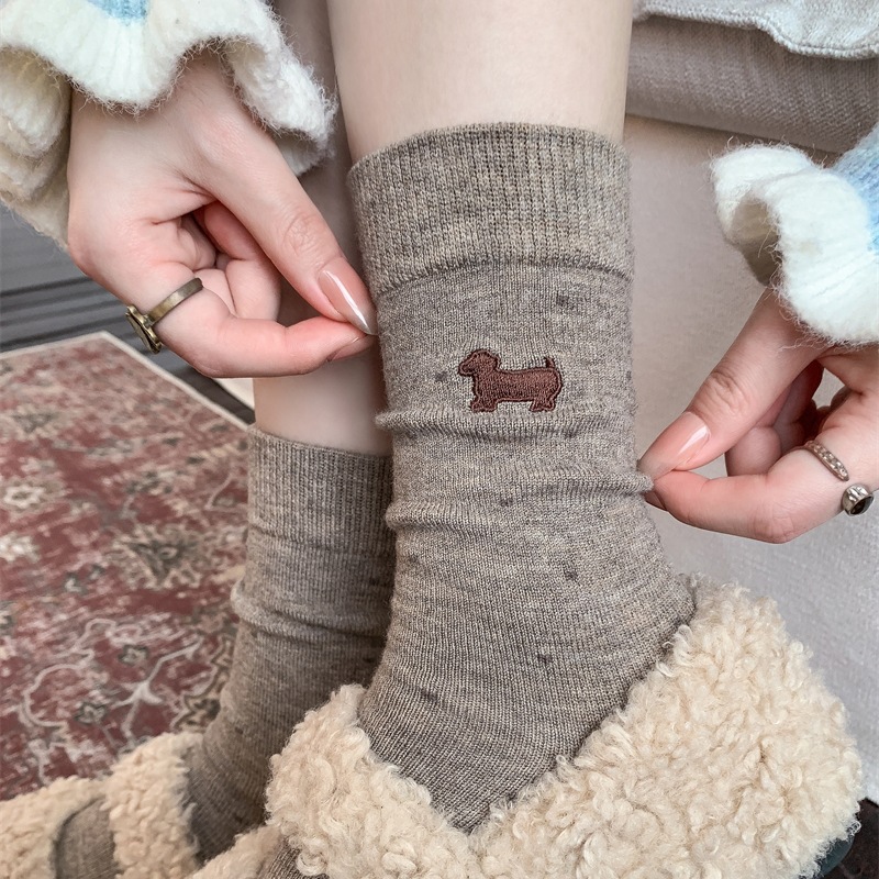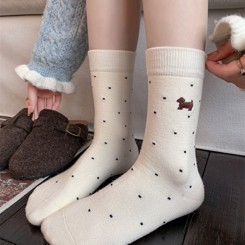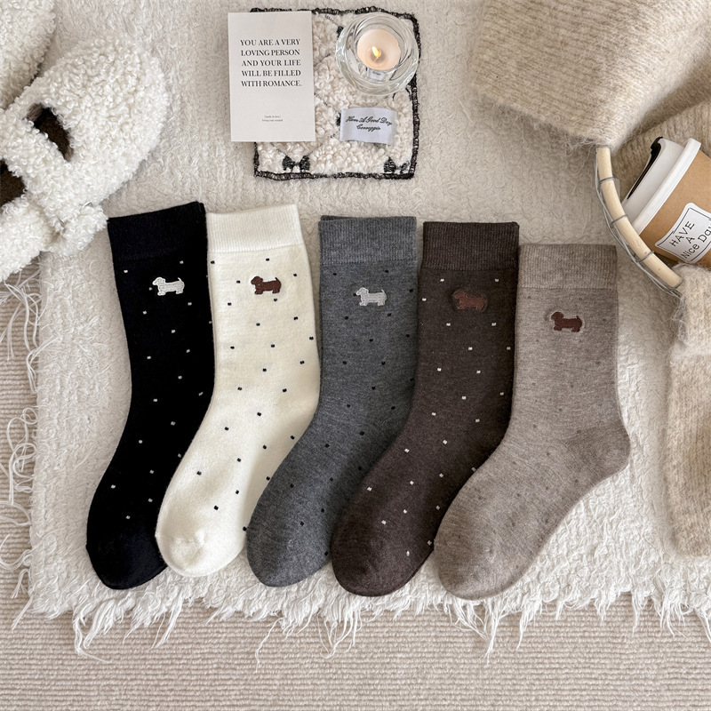 가을과 겨울 두꺼운 바늘 면 단색 편지 인쇄 유행 모든 일치 스타일 타월 바닥 미국 스포츠 양말스토어 가기