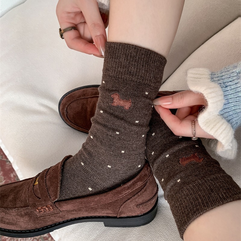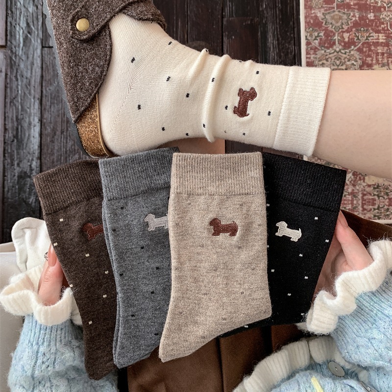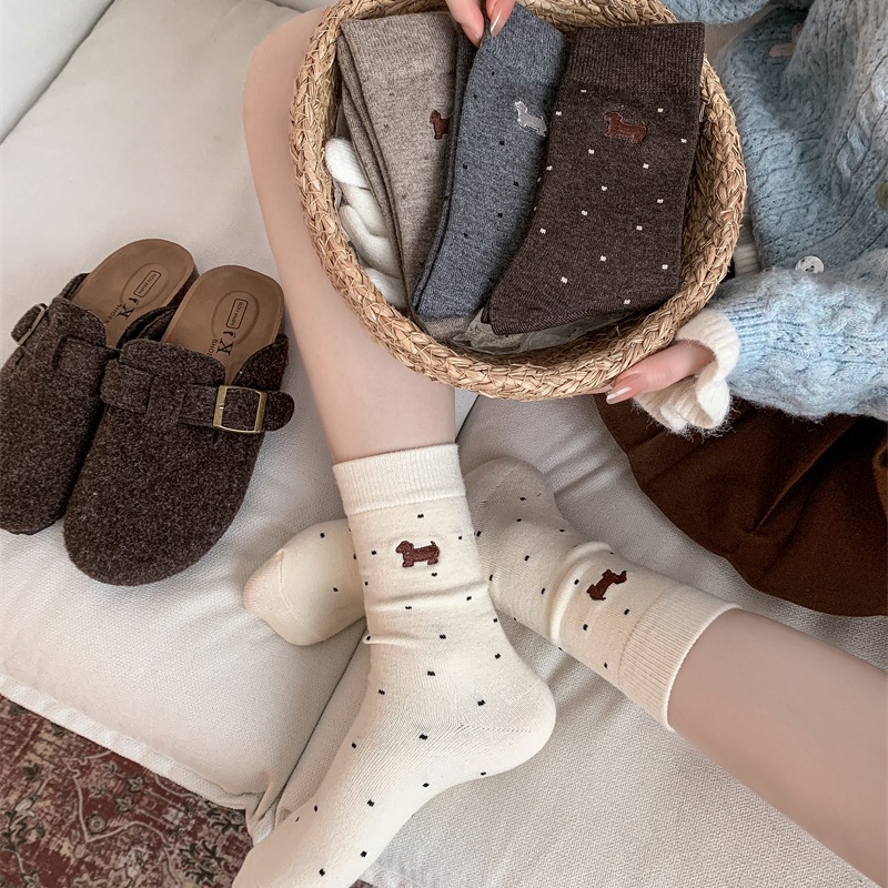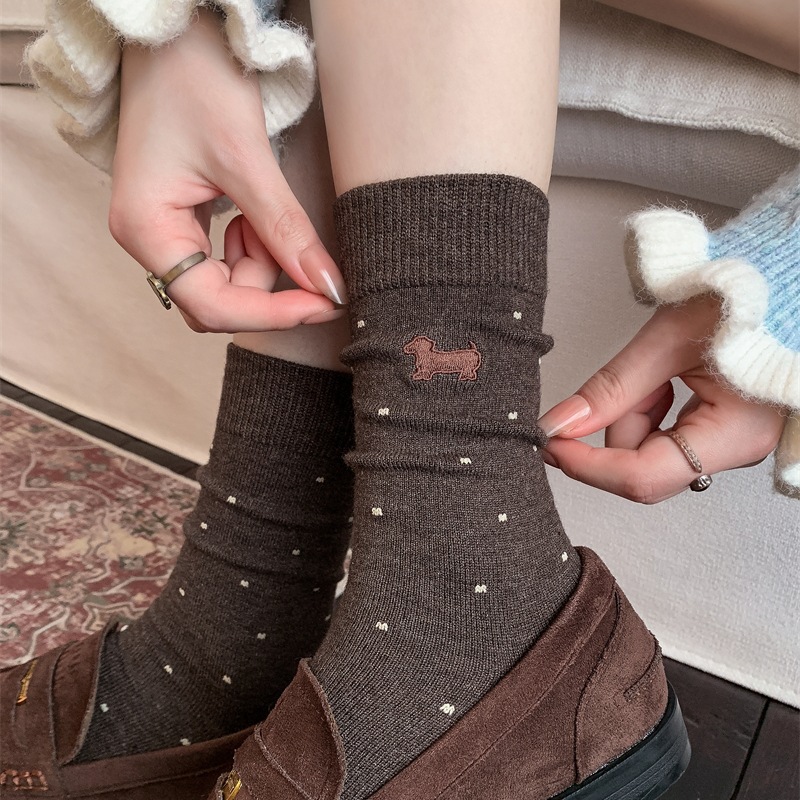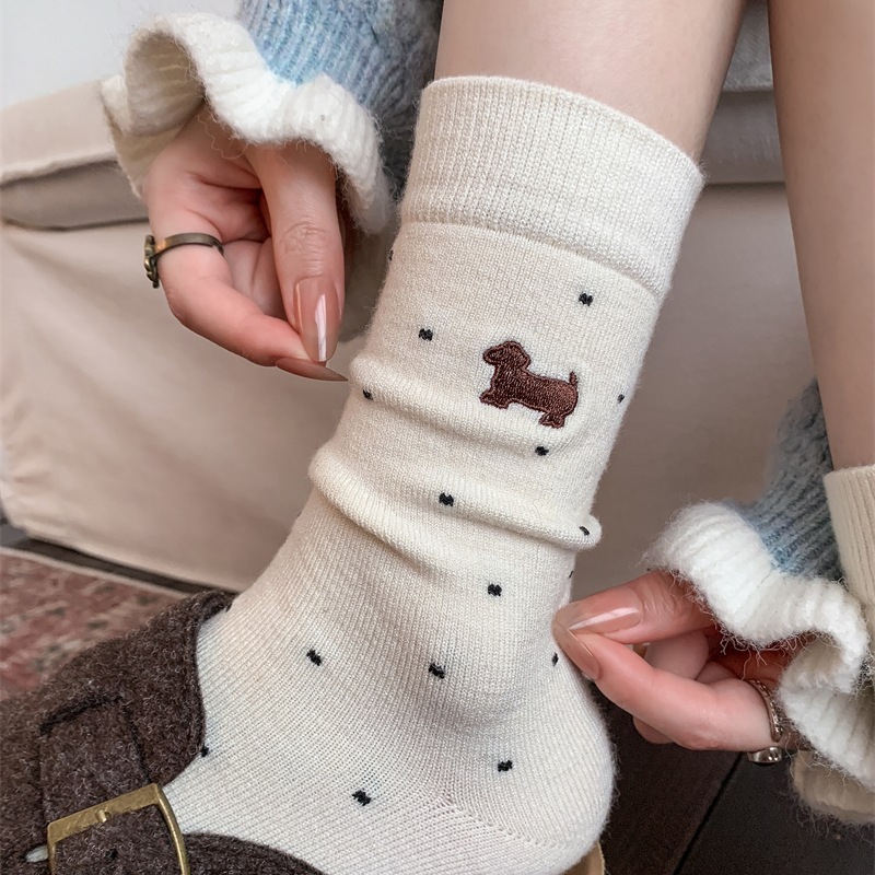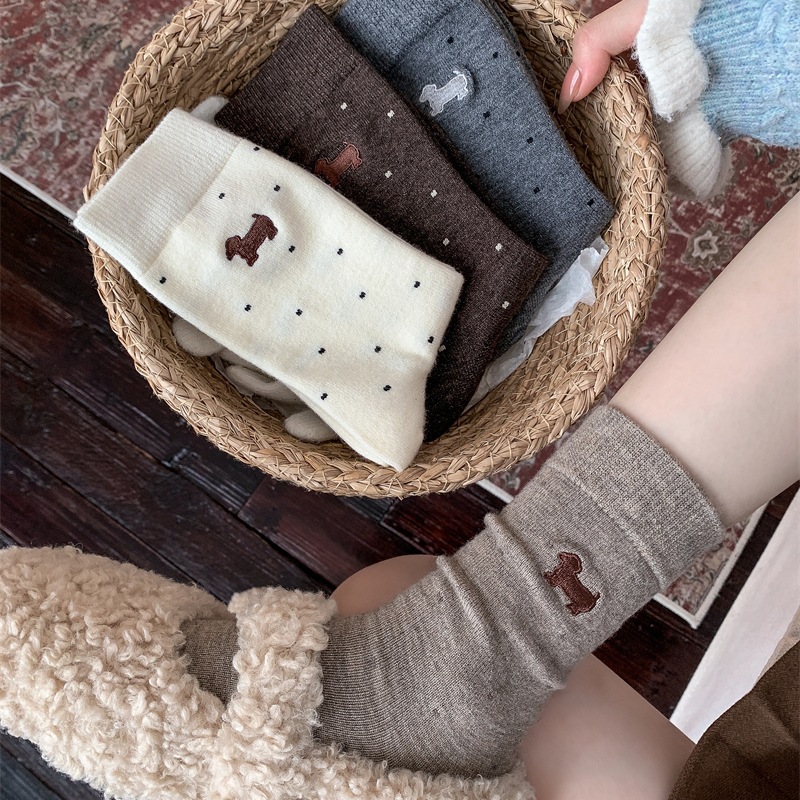 가을과 겨울 두꺼운 바늘 면 단색 편지 인쇄 유행 모든 일치 스타일 타월 바닥 미국 스포츠 양말스토어 가기