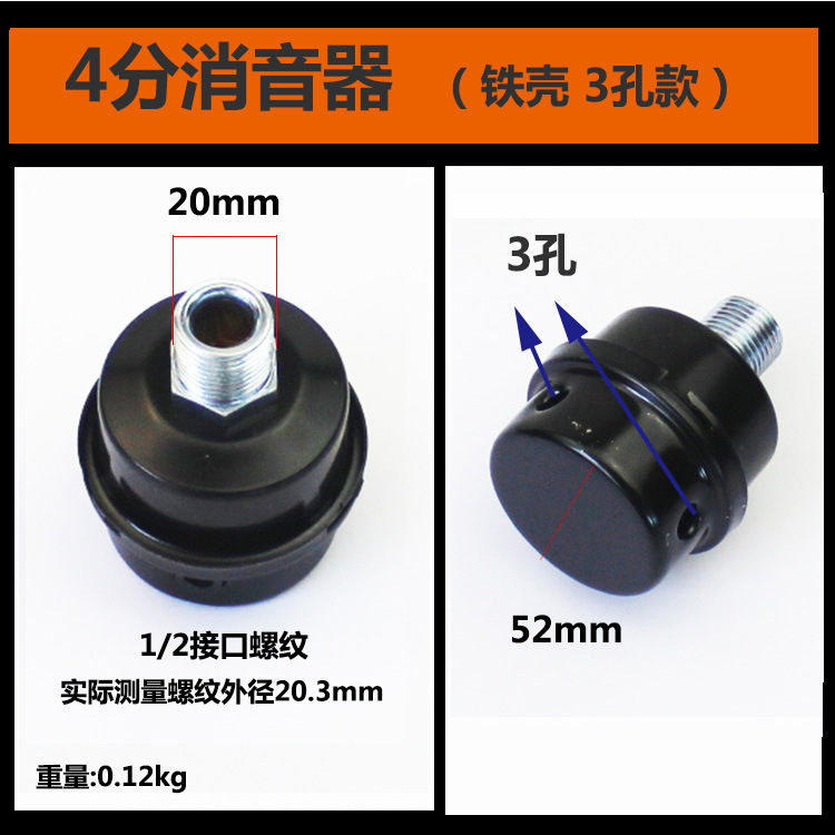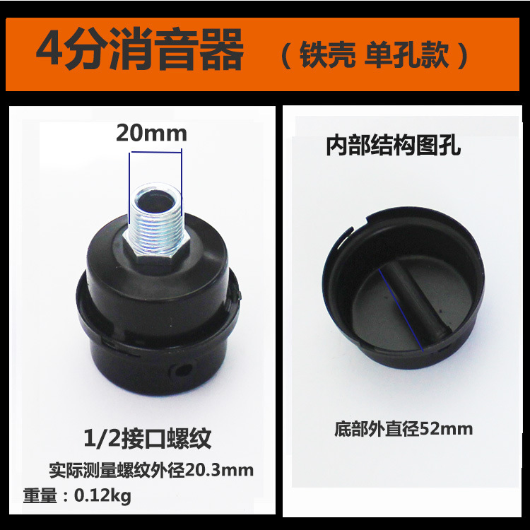 • 오일 프리 1/2 20MM 철 쉘 소음기 단일 구멍 플라스틱 파이프