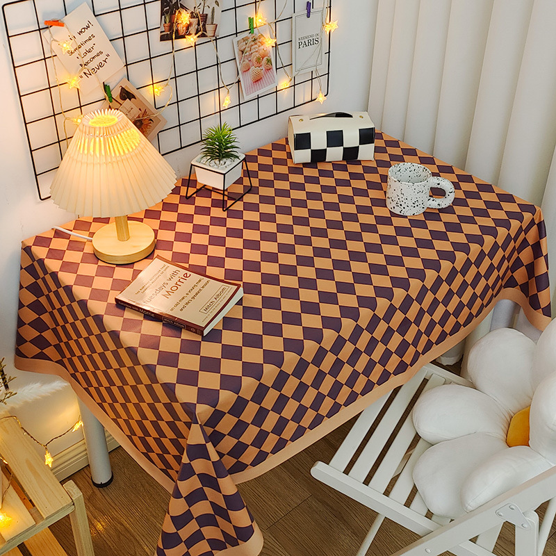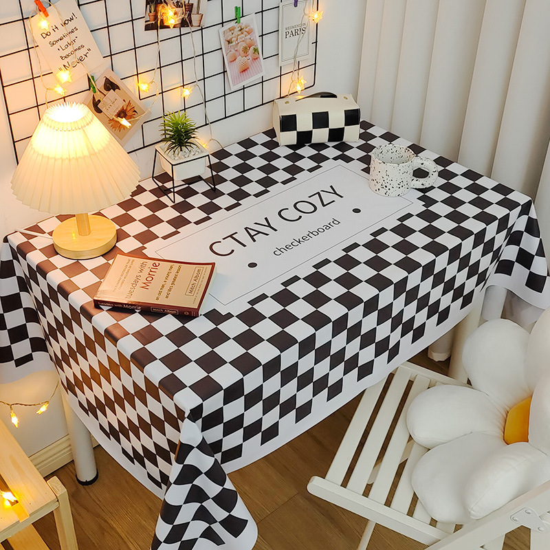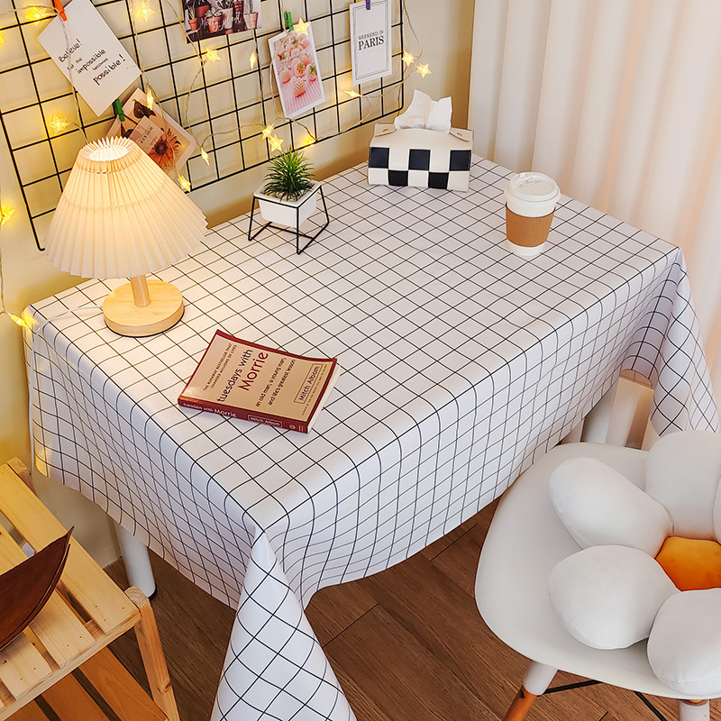 PVC 식탁보 방수 및 방수 in 스타일 현대 간단한 격자 무늬 TV 캐비닛 커버 타월 학생 책상 커피 테이블 식탁보