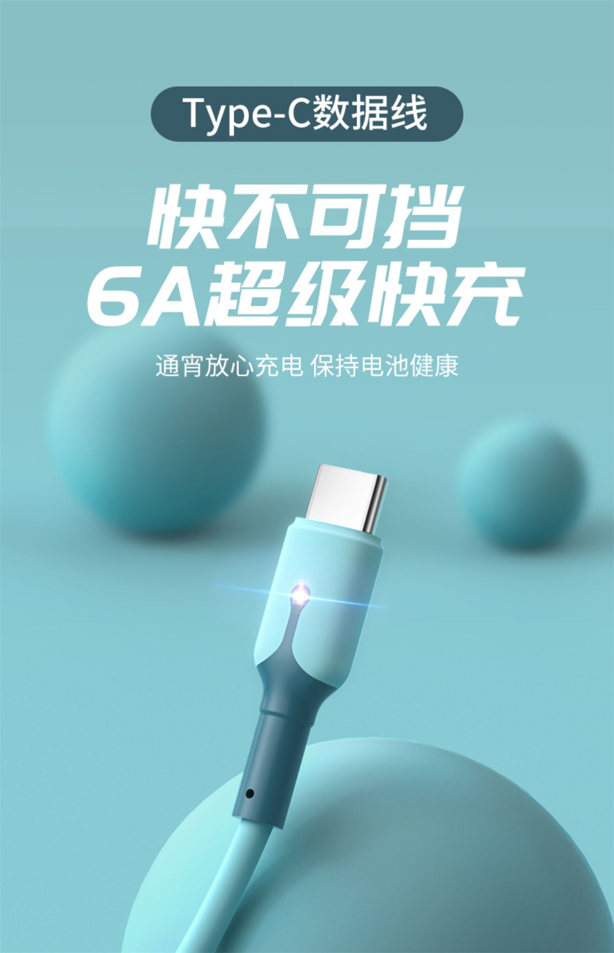 화웨이 Xiaomi 안드로이드 플래시 충전 케이블 용 6A 초고속 충전 Type-c 데이터 케이블 액체 소프트 테이프 램프스토어 가기