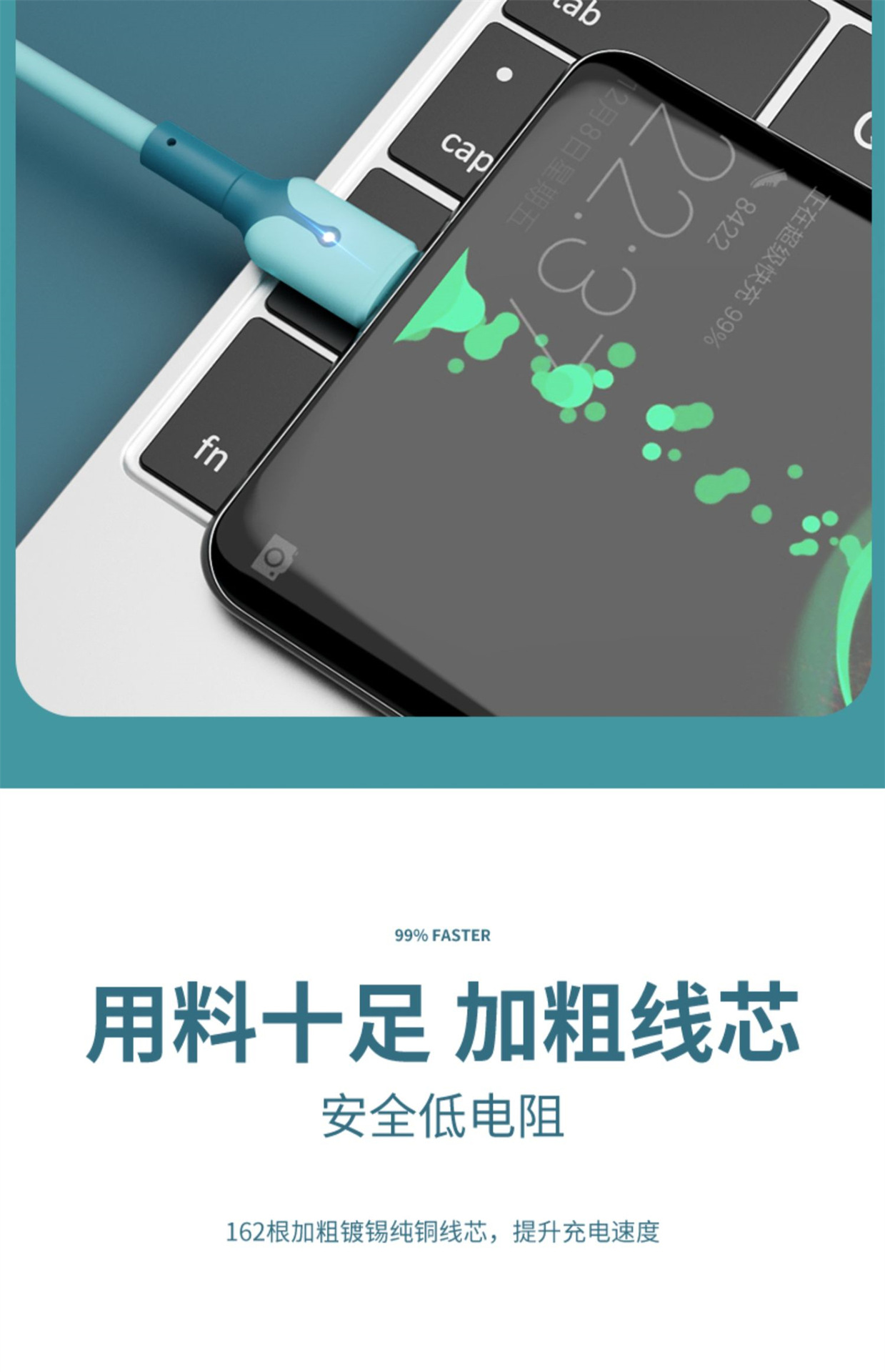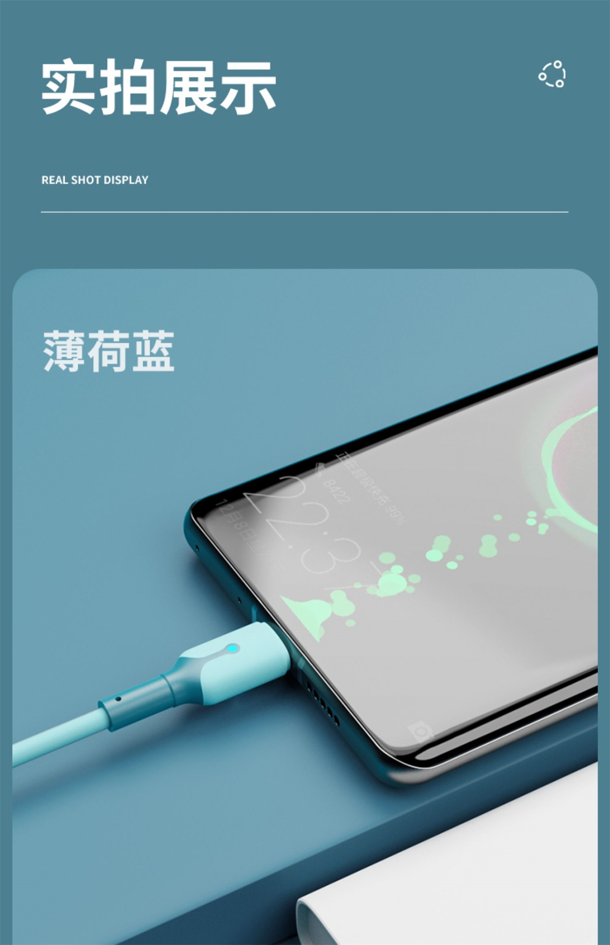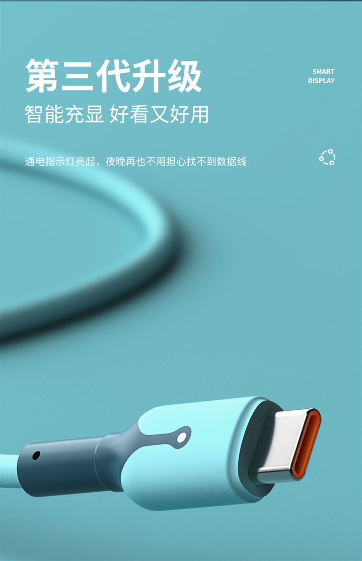 화웨이 Xiaomi 안드로이드 플래시 충전 케이블 용 6A 초고속 충전 Type-c 데이터 케이블 액체 소프트 테이프 램프