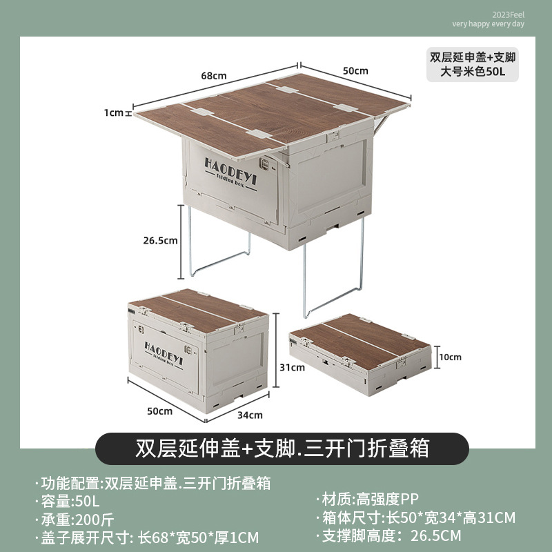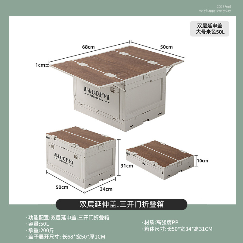 캠핑 수납함 접이식 박스 자동차 트렁크 테이블 측면 개방 대용량 피크닉 보관함 나무 상자
