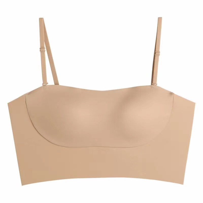 여아 끈이없는 속옷 여성용 작은 가슴 개더 엉덩이 걷기 방지 아름다운 등 슬링 조끼 스타일 원활한 브래지어 러닝 볼륨