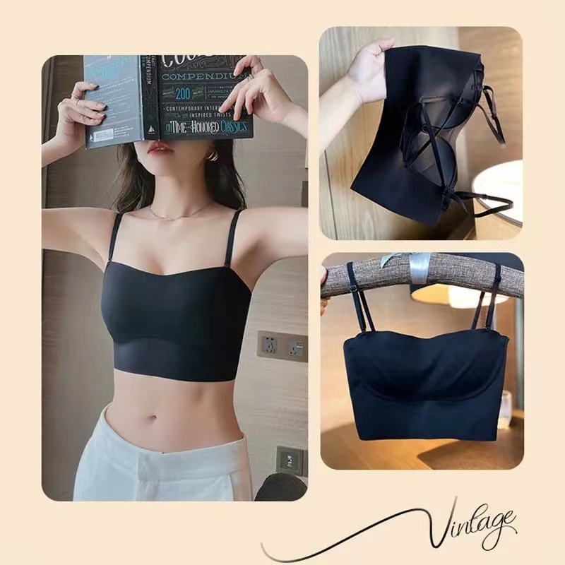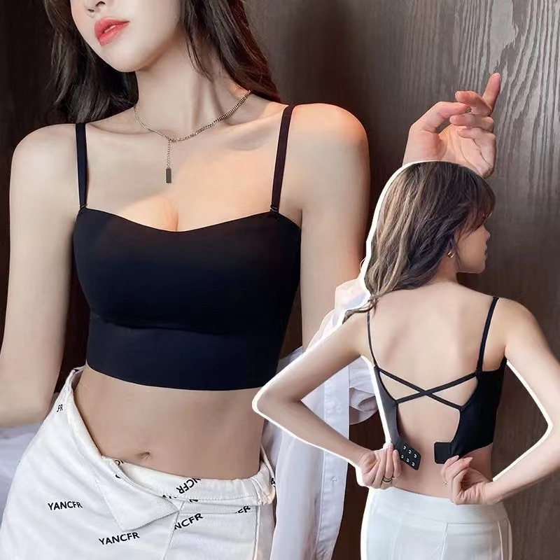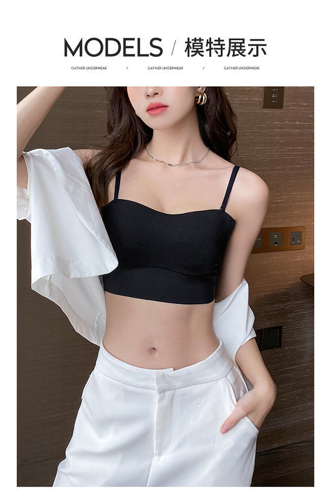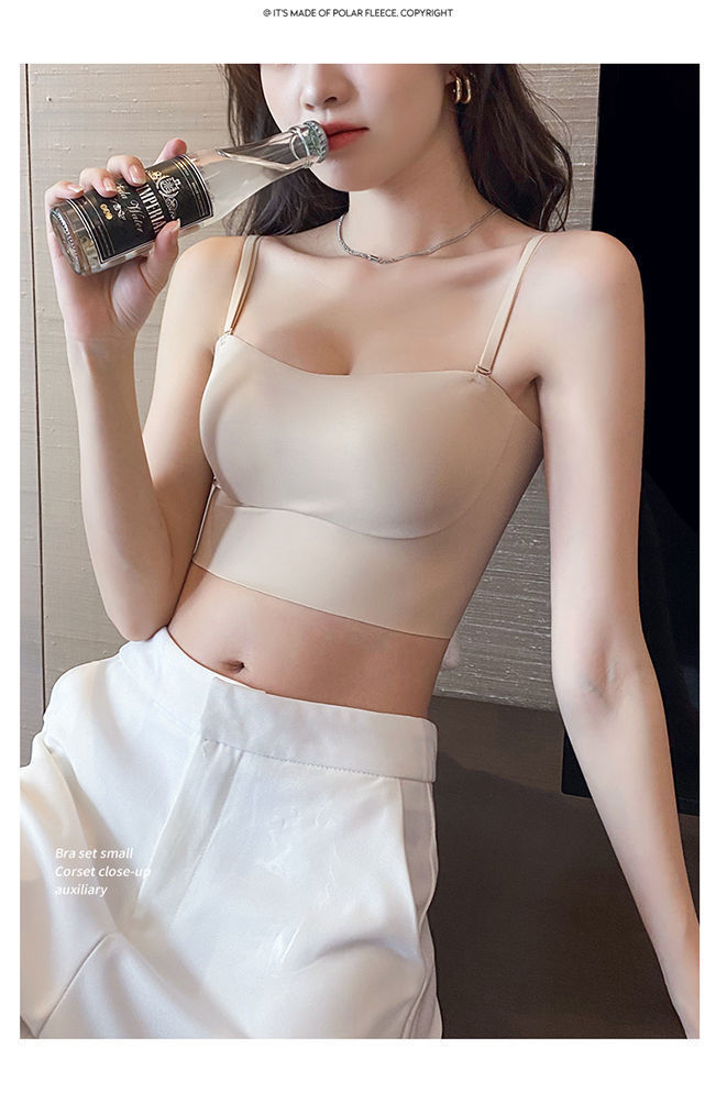 여아 끈이없는 속옷 여성용 작은 가슴 개더 엉덩이 걷기 방지 아름다운 등 슬링 조끼 스타일 원활한 브래지어 러닝 볼륨스토어 가기