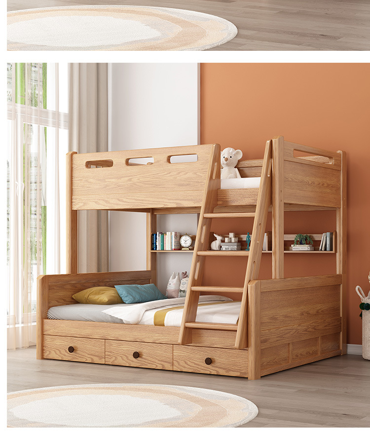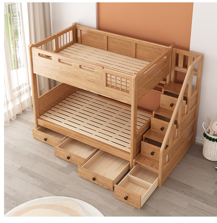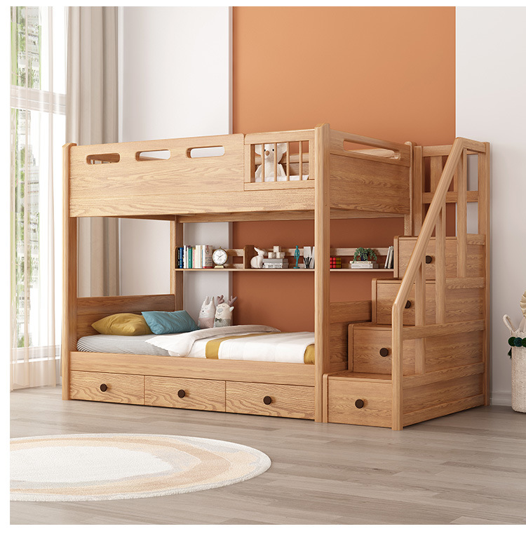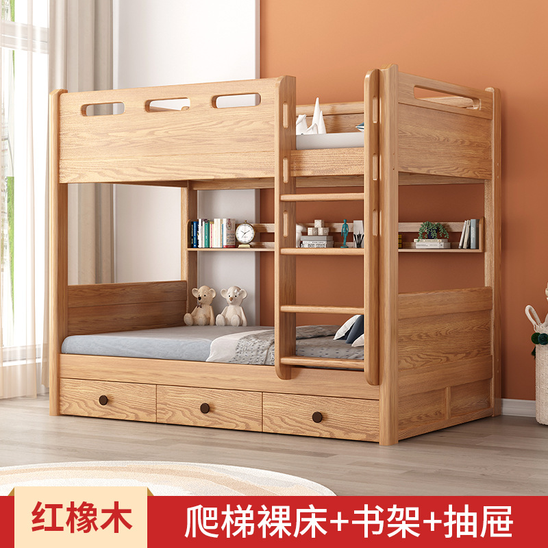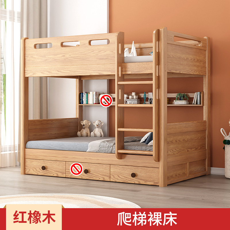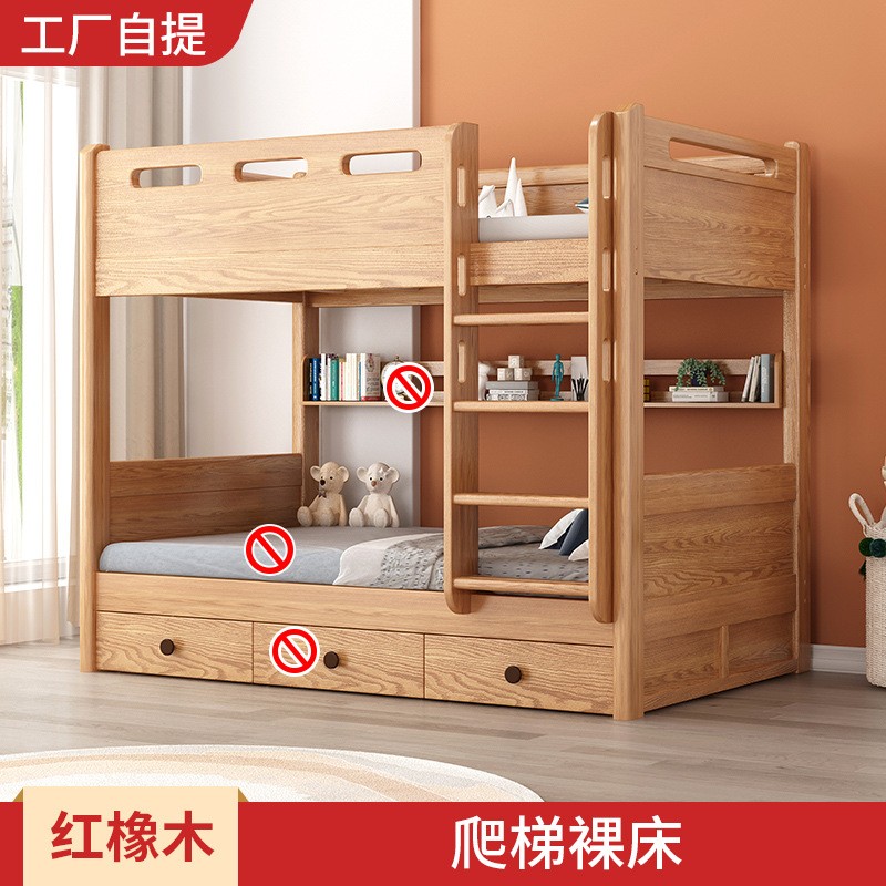이층 침대 단단한 나무 이층 침대 2 층 같은 폭 평행 어린이 높고 낮은 침대 레드 오크 성인 어머니 침대스토어 가기