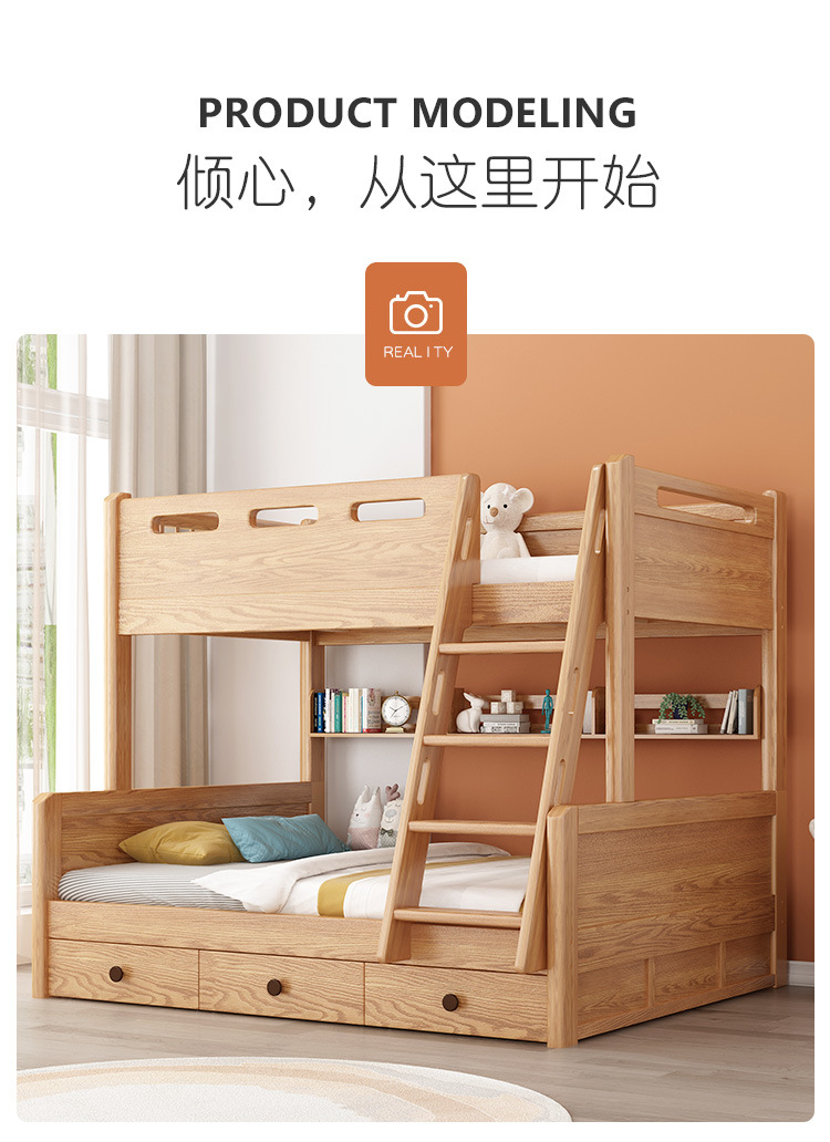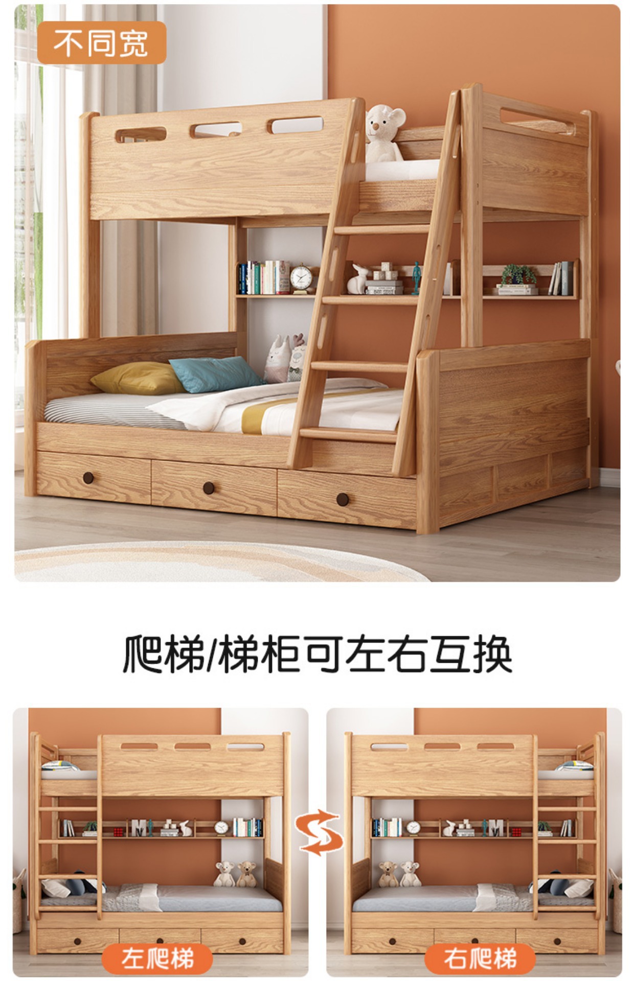이층 침대 단단한 나무 이층 침대 2 층 같은 폭 평행 어린이 높고 낮은 침대 레드 오크 성인 어머니 침대