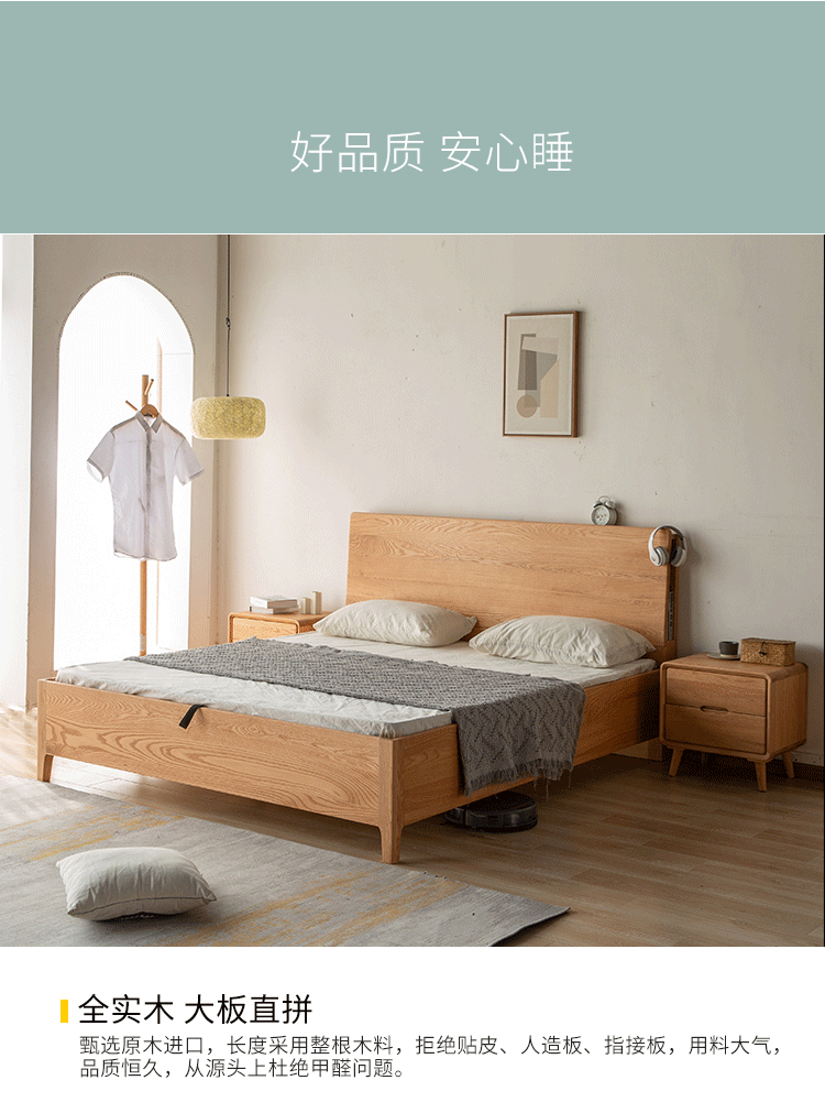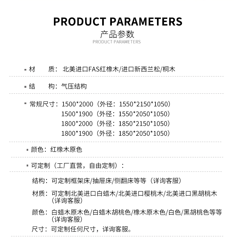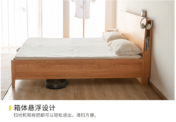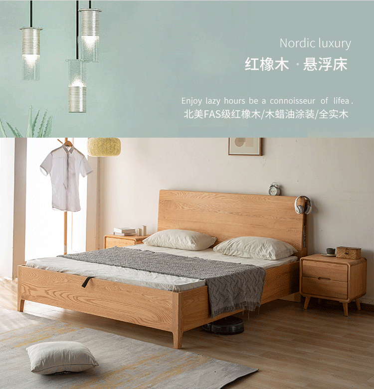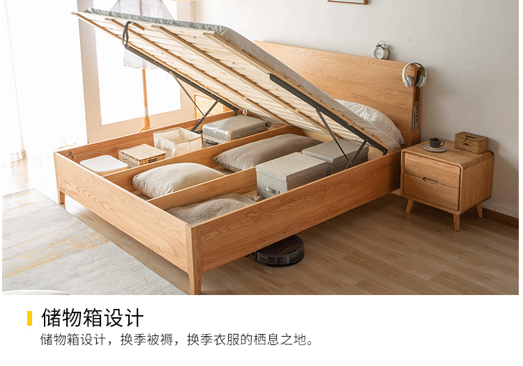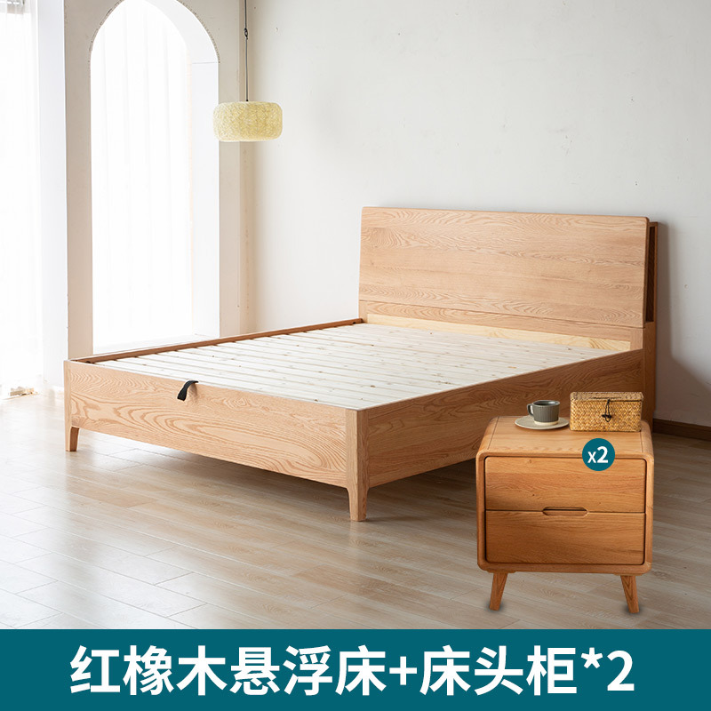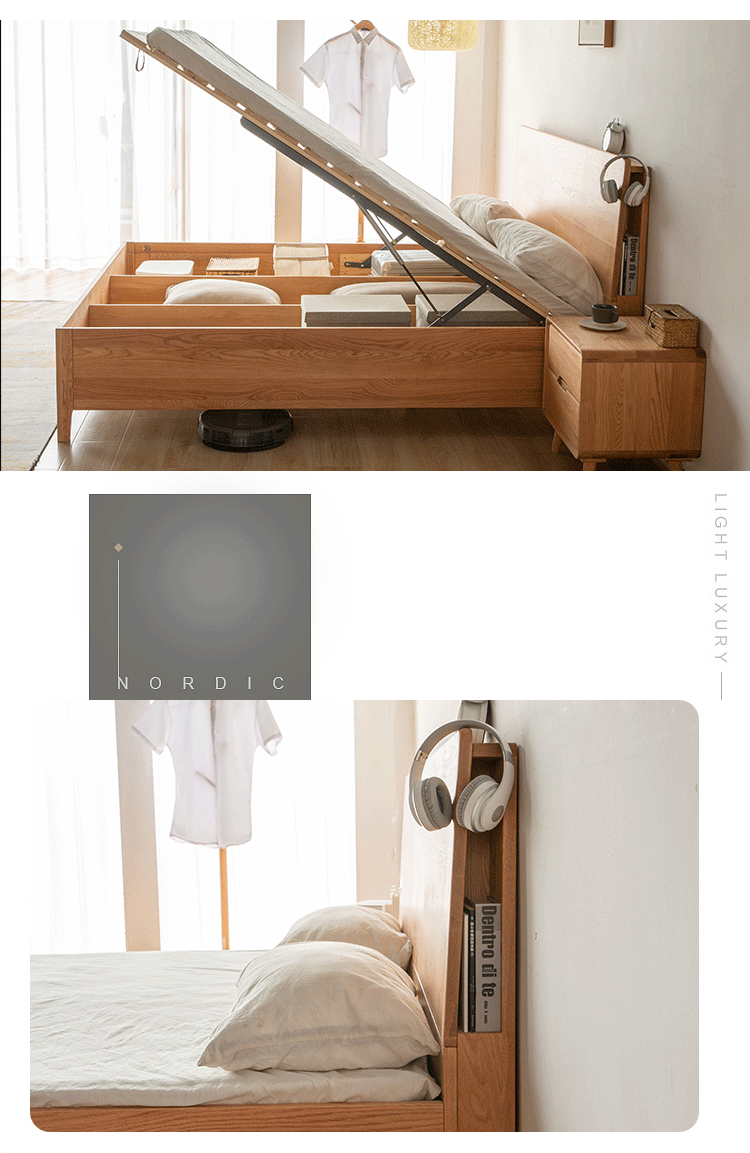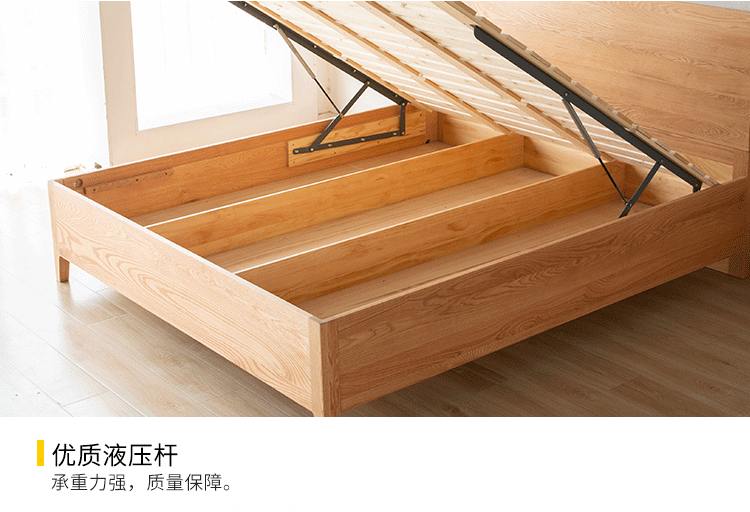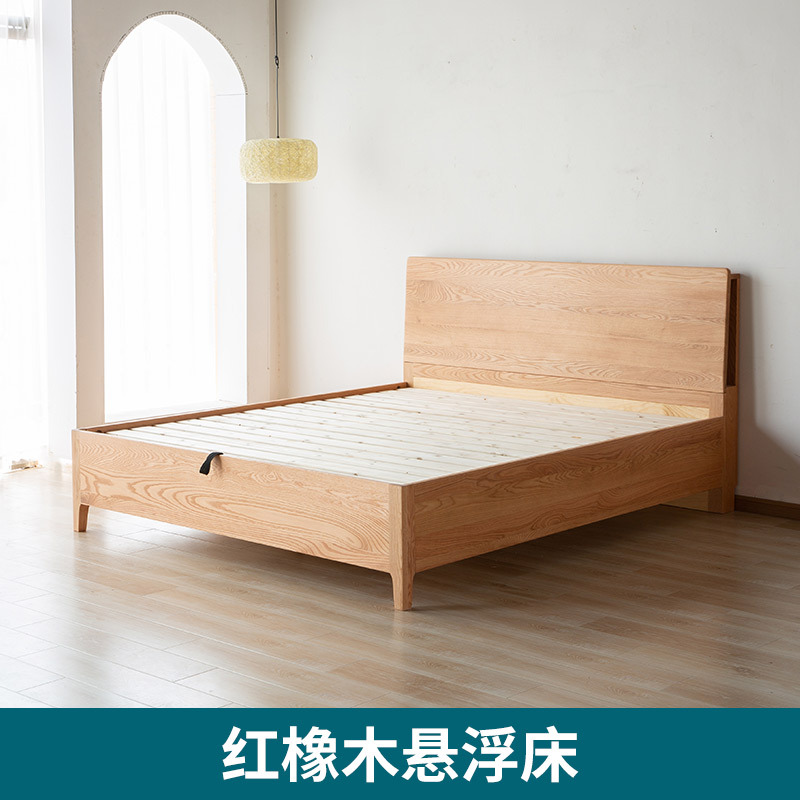 북미 레드 오크 서스펜션 침대 단단한 나무 높은 상자 보관 공압 침대 더블 침대 북유럽 일본 마스터 침대 단단한 나무 침대스토어 가기