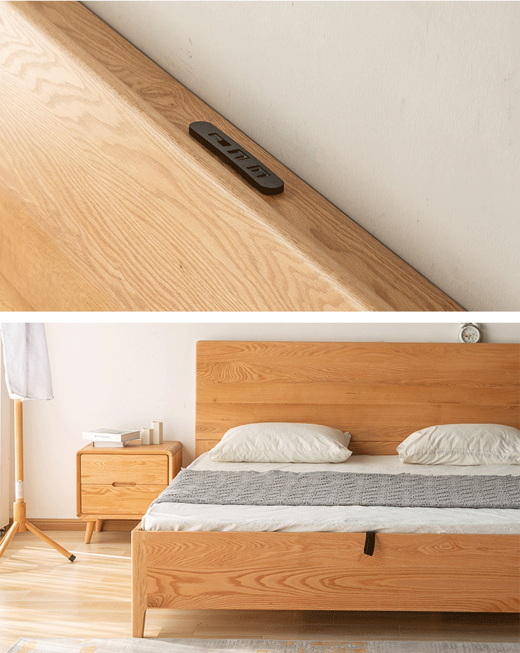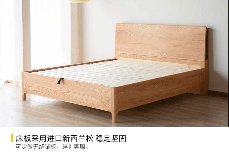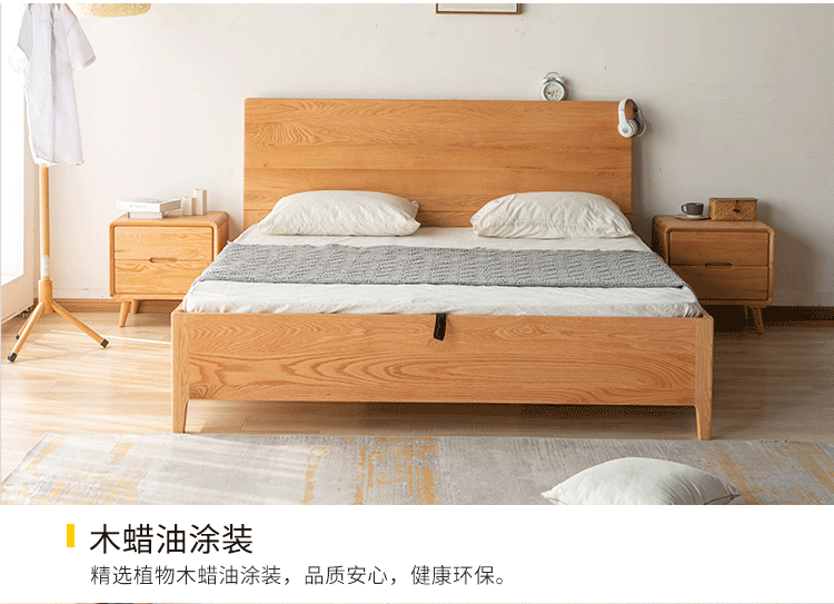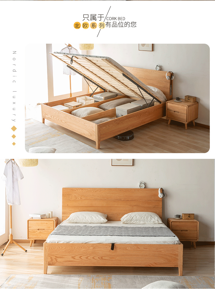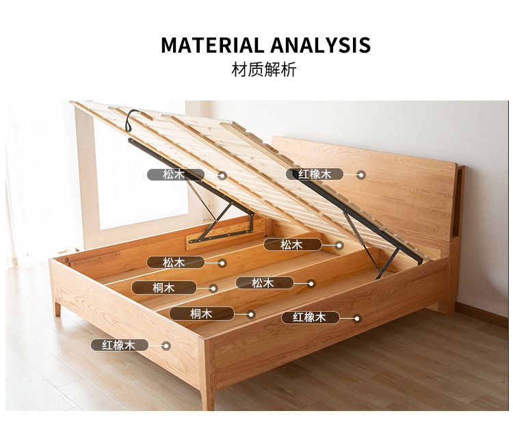 북미 레드 오크 서스펜션 침대 단단한 나무 높은 상자 보관 공압 침대 더블 침대 북유럽 일본 마스터 침대 단단한 나무 침대