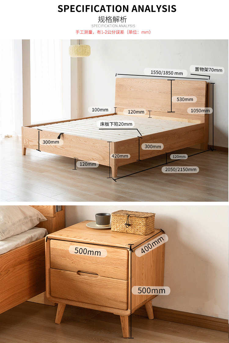 • 레드 오크 서스펜션 침대 + 침대 옆 탁자 * 1
