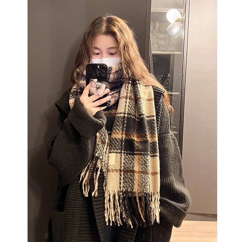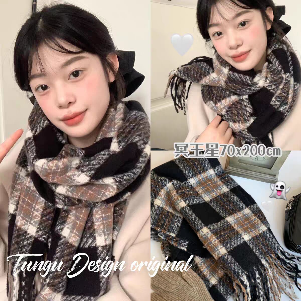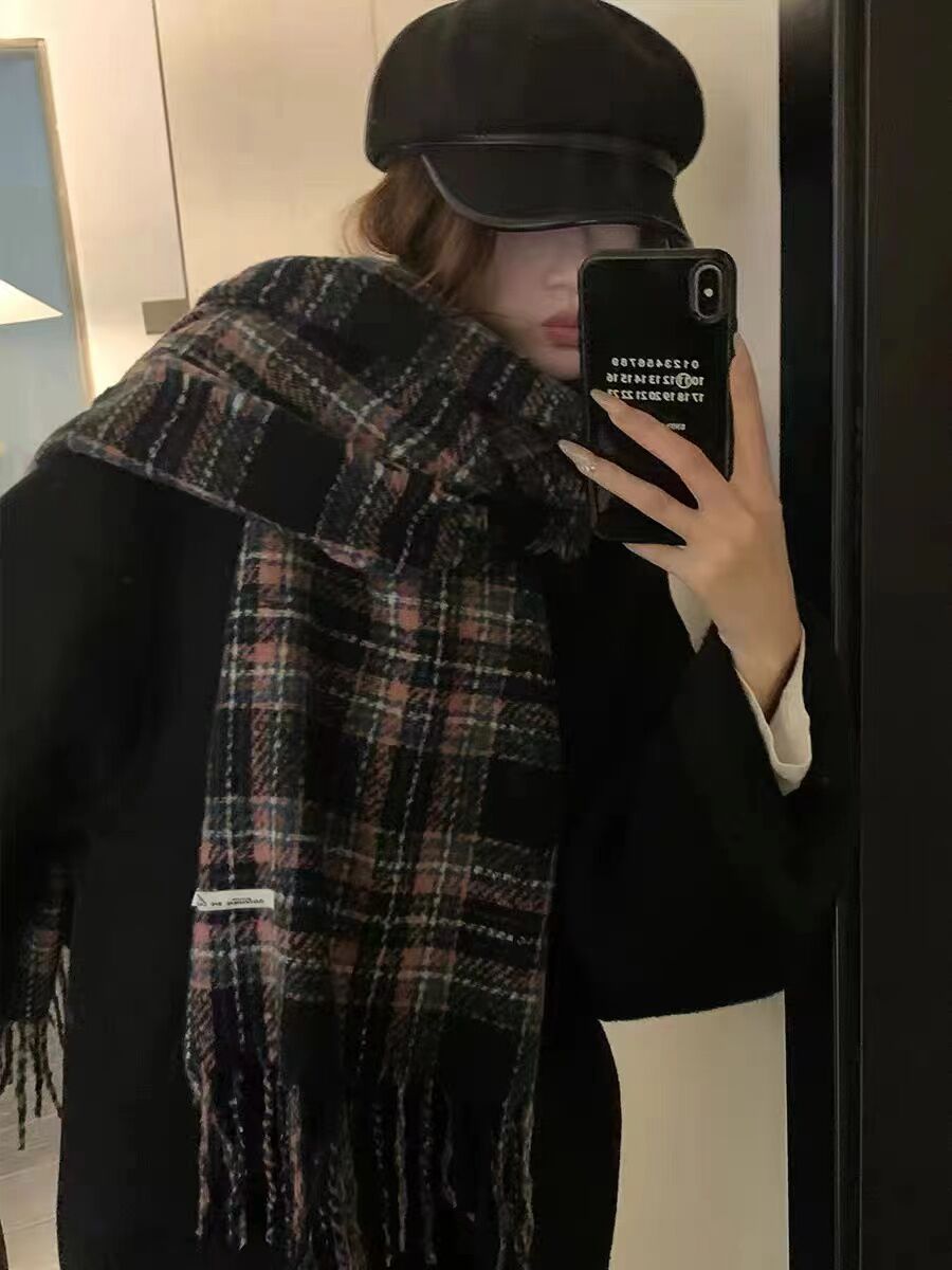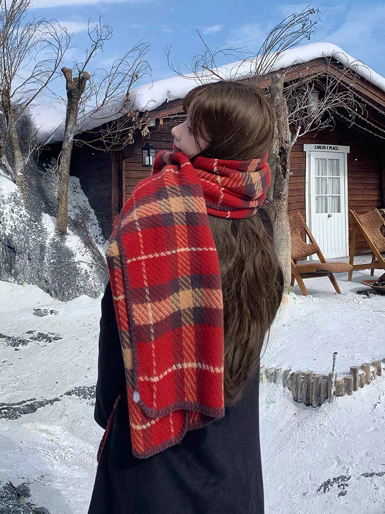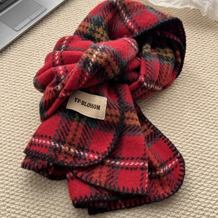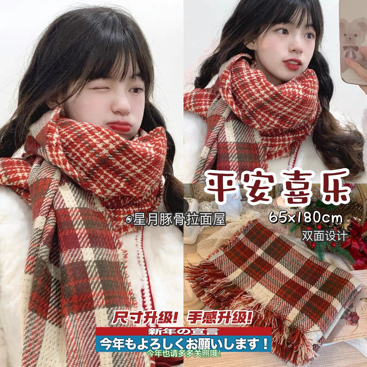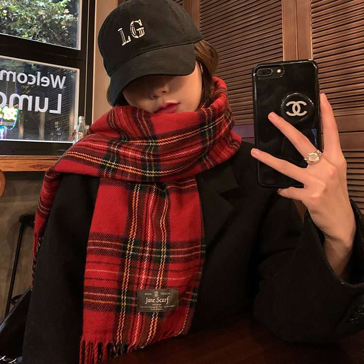 분위기 새해 붉은 격자 무늬 레트로 스카프 여자 가을 겨울 한국식 올매치 따뜻한 목 커플 목도리