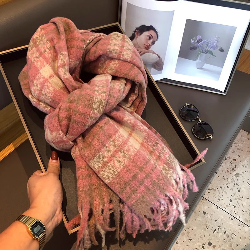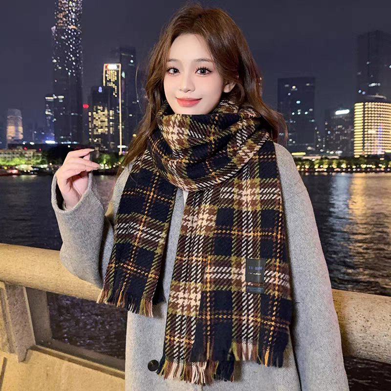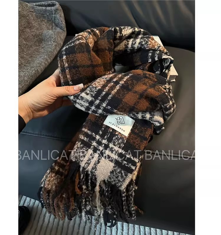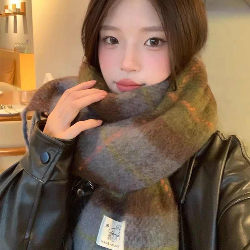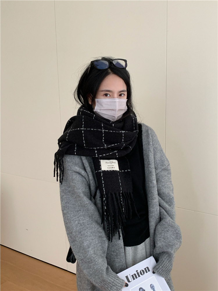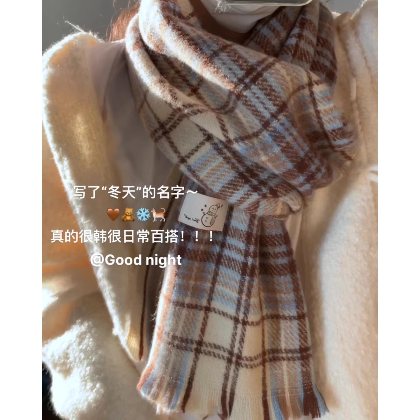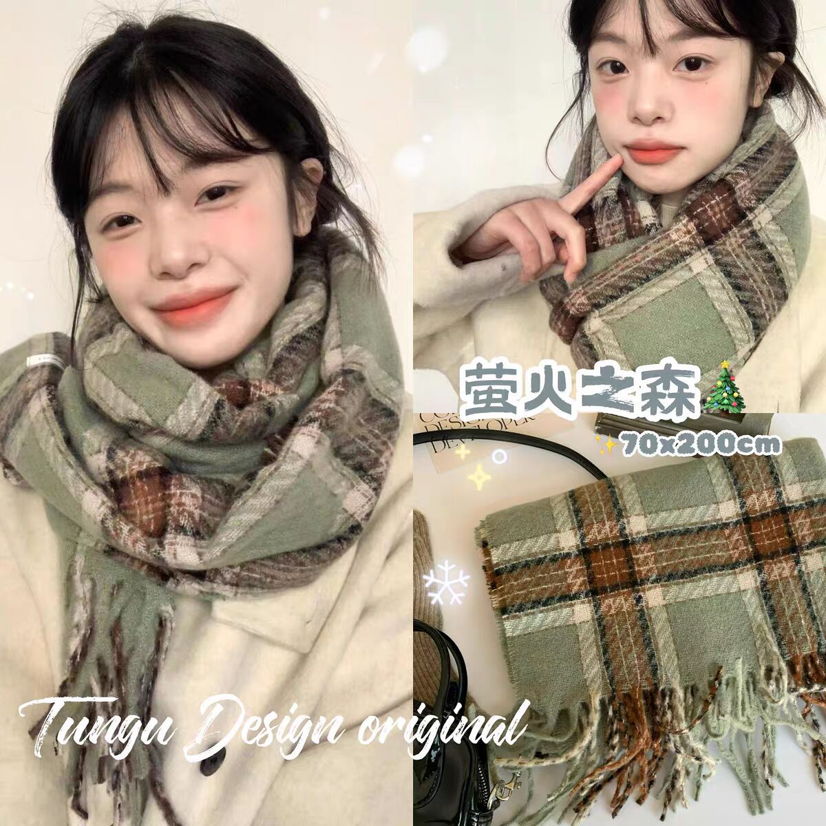 분위기 새해 붉은 격자 무늬 레트로 스카프 여자 가을 겨울 한국식 올매치 따뜻한 목 커플 목도리